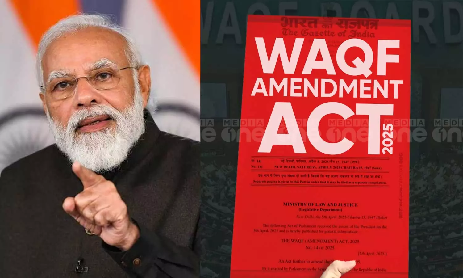 പ്രതിപക്ഷ എതിർപ്പ് അവഗണിച്ച് ലോക്സഭയിലും രാജ്യസഭയിലും പാസാക്കിയ വഖഫ് ഭേദഗതി ബിൽ കഴിഞ്ഞ ശനിയാഴ്ച അർധരാത്രി രാഷ്ട്രപതി ഒപ്പിട്ടതോടെയാണ് നിയമമായത്.