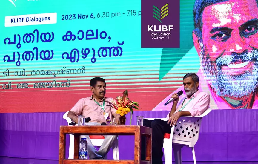 കേരള നിയമസഭാ പുസ്തകോത്സവത്തിന്റെ ഭാഗമായി നടന്ന കെ.എല്.ഐ.ബി.എഫ്. ഡയലോഗ്സ് സെഷനില് 'പുതിയ കാലം, പുതിയ എഴുത്ത്' എന്ന വിഷയത്തില് എഴുത്തുകാരായ ടി.ഡി. രാമകൃഷ്ണനും വി.ജെ. ജെയിംസും സംവദിച്ചു. തങ്ങള് എഴുതിത്തുടങ്ങിയ കാലം മുതല് ഇപ്പോള് വരെ എഴുത്തിലുണ്ടായ മാറ്റത്തെക്കുറിച്ച് ഇരുവരും സംസാരിച്ചു.