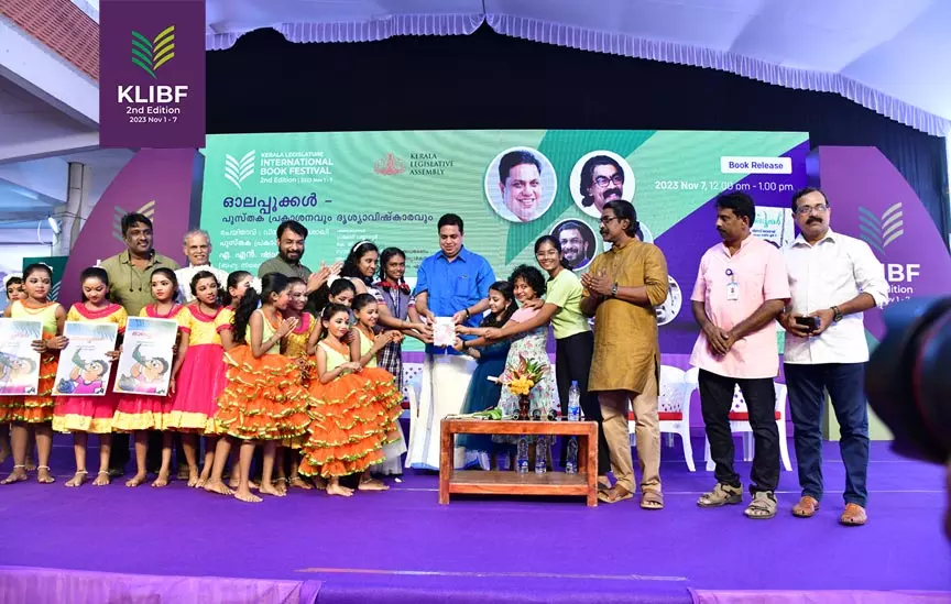 വിനോദ് വൈശാഖി കുട്ടികള്ക്കായി രചിച്ച 'ഓലപ്പൂക്കള്' എന്ന പുസ്തകം കുട്ടികള്ക്ക് നല്കി നിയമസഭാ സ്പീക്കര് എ.എന് ഷംസീര് പ്രകാശനം ചെയ്തു. പൂര്ണ്ണമായും ഹരിത മാനദണ്ഡങ്ങള് പാലിച്ചുള്ള പുസ്തക പ്രകാശനമാണിതെന്ന് സ്പീക്കര് പറഞ്ഞു. സാഹിത്യ സാംസ്കാരിക പ്രവര്ത്തനത്തെ കേരളത്തിലെ ജനങ്ങള് എങ്ങനെ ഏറ്റെടുക്കും എന്നതിന് തെളിവാണ് നിയമസഭാ അന്താരാഷ്ട്ര പുസ്തകോത്സവത്തിന്റെ ഒന്നും രണ്ടും പതിപ്പുകളെന്ന് അദ്ദേഹം അഭിപ്രായപ്പെട്ടു. കുട്ടികളും മുതിര്ന്നവരും ഉള്പ്പടെ പുസ്തകോത്സവത്തിന് എത്തിയവര്ക്ക് സ്പീക്കര് നന്ദി പറഞ്ഞു.