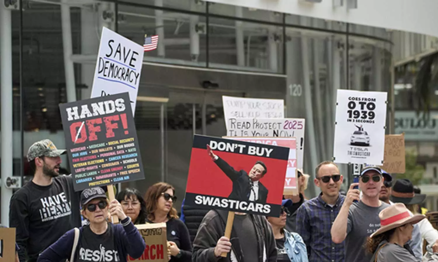 യുഎസ് ഫെഡറല് സര്ക്കാരിനെ തകര്ക്കാനുള്ള മസ്കിന്റെ ശ്രമങ്ങള്ക്കെതിരെ പ്രതിഷേധിക്കുക എന്നതായിരുന്നു കാലിഫോര്ണിയിലെ പ്രതിഷേധത്തിലെ മുദ്രാവാക്യം. ടെസ്ല വാങ്ങരുത്, ടെസ്ലയുടെ ഓഹരികള് വിറ്റഴിക്കുക, ടെസ്ല ടേക്ക്ഡൗൺ ബഹിഷ്ക്കരണ പ്രസ്ഥാനത്തില് പങ്കാളിയാവുക എന്നീ ആവശ്യങ്ങളാണ് പ്രതിഷേധക്കാര് മുന്നോട്ട് വെക്കുന്നത്.