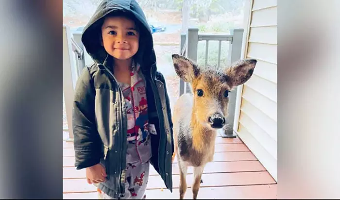 നാലു വയസ്സുകാരൻ കളിക്കാൻ പോയി; തിരിച്ചുവന്നത് മാൻകുഞ്ഞുമായി!