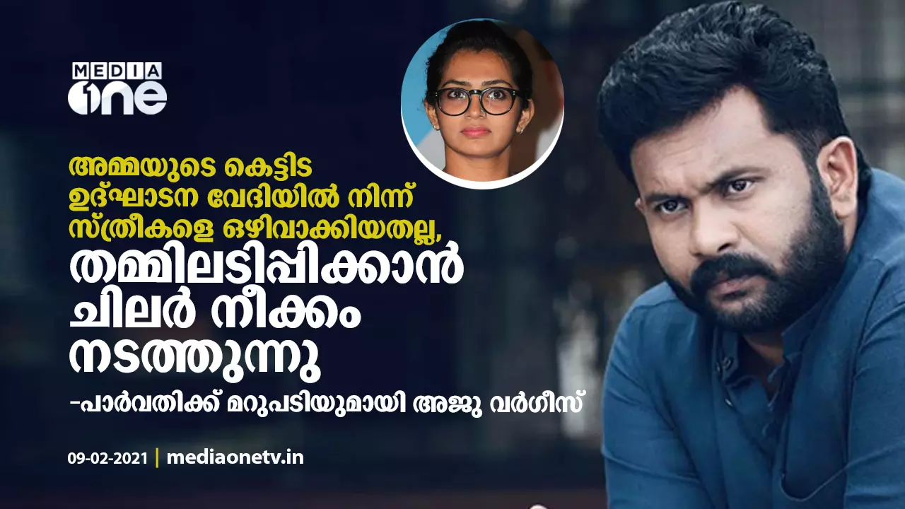 'അമ്മയുടെ വേദിയില് നിന്ന് സ്ത്രീകളെ ഒഴിവാക്കിയതല്ല, തമ്മിലടിപ്പിക്കാന് ചിലര് നീക്കം നടത്തുന്നു'; പാര്വതിക്ക് മറുപടിയുമായി അജു വര്ഗീസ്