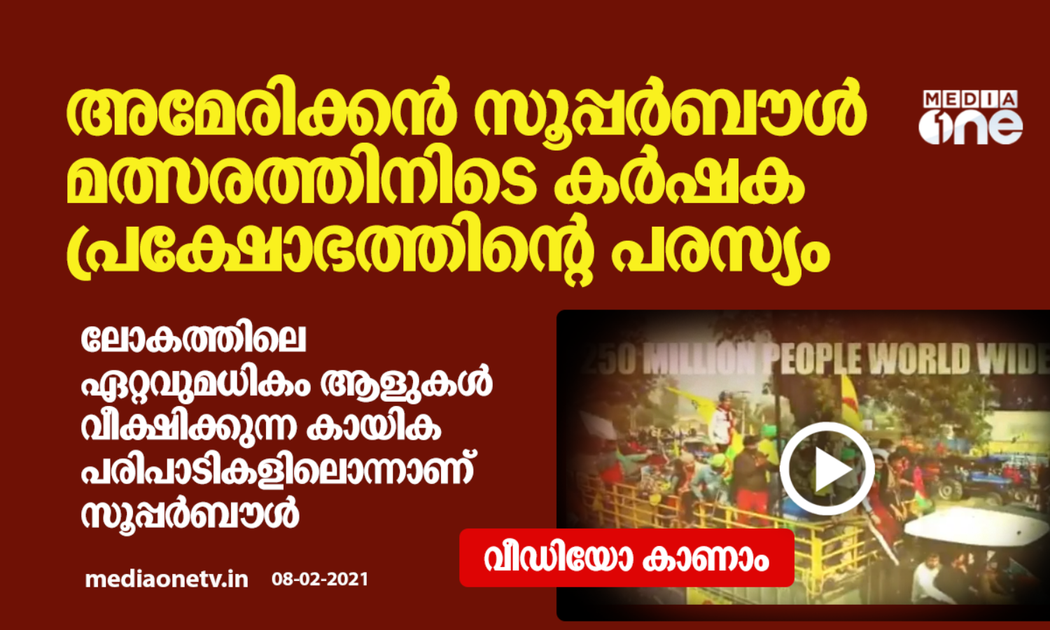 അമേരിക്കന് സൂപ്പര്ബൗള് മത്സരത്തിനിടെ കര്ഷക പ്രക്ഷോഭത്തിന്റെ പരസ്യം