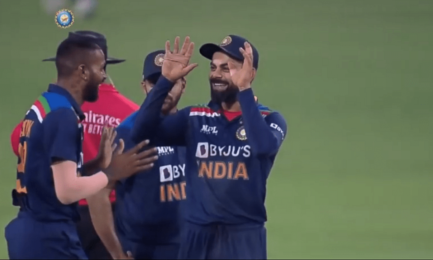 ഇംഗ്ലണ്ട് ഇന്നിങ്സിലെ പത്താം ഓവറിലായിരുന്നു നാടകീയമായ ആഘോഷ നിമിഷങ്ങള്. നടരാജന്റെ ബൌളില് ബൌണ്ടറിക്കരികെ ധവാന് ക്യാച്ച് നല്കിയായിരുന്നു സ്റ്റോക്സിന്റെ മടക്കം. 35 റണ്സുമായി സ്റ്റോക്സ് പുറത്താകുമ്പോഴേക്കും ഇന്ത്യന് താരങ്ങള് ആഘോഷം തുടങ്ങിയിരുന്നു.