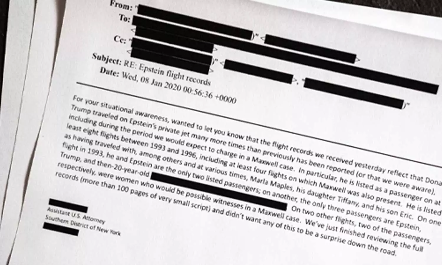 പിന്നീട് വ്യാപകമായ ലൈംഗിക്കടത്ത് കേസിൽ കുറ്റാരോപിതനായി ജയിലിൽ കഴിയുന്നതിനിടെയാണ് 2019-ൽ എപ്സ്റ്റീൻ മരിച്ചത്. പുറത്തുവിട്ട പുതിയ രേഖകൾ കേസുമായി ബന്ധപ്പെട്ട പഴയ വിവാദങ്ങൾ വീണ്ടും ശക്തമാക്കുമെന്നാണ് നിരീക്ഷക വിലയിരുത്തൽ.