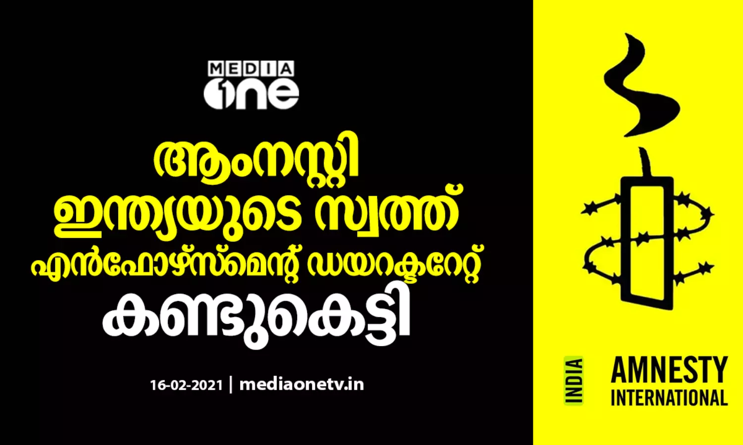 ആംനസ്റ്റി ഇന്ത്യയുടെ സ്വത്ത് എന്ഫോഴ്സ്മെന്റ് ഡയറക്ടറേറ്റ് കണ്ടുകെട്ടി