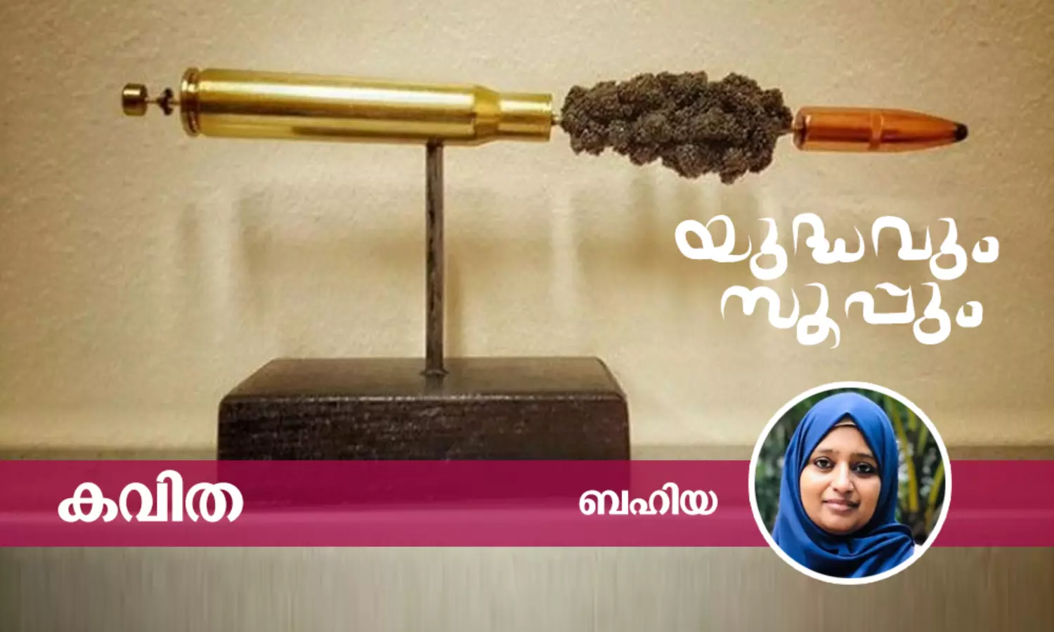 (International journal-ല് പ്രസിദ്ധീകരിക്കപ്പെട്ട എന്റെ തന്നെ ഇംഗ്ലീഷ് കവിതയായ war and soup ന്റെ മലയാള വേര്ഷനാണ് മുകളിലുള്ള കവിത)