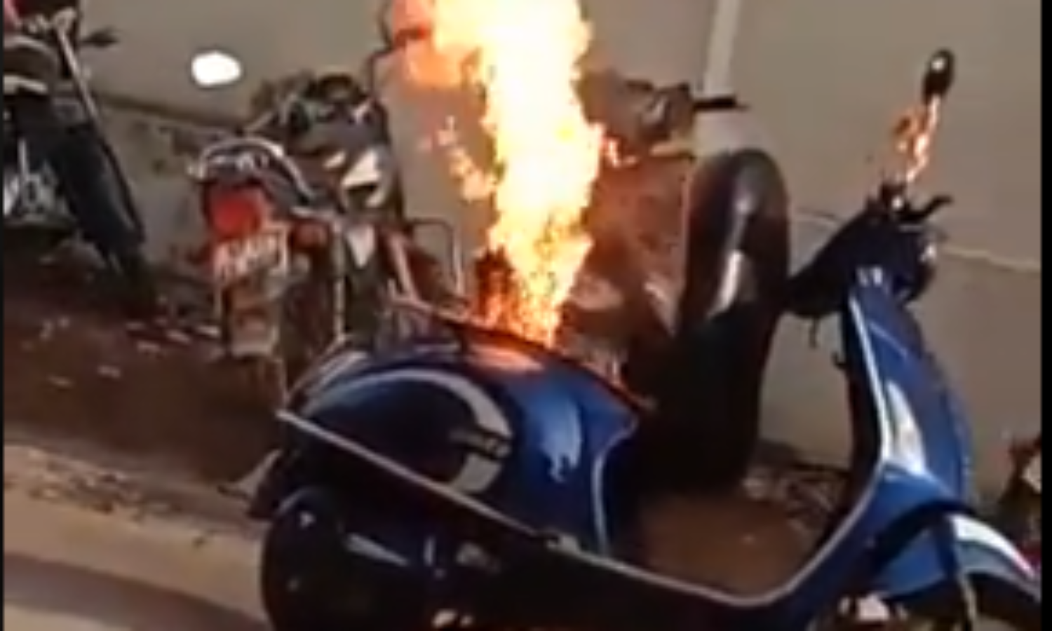 ഇലക്ട്രിക് സ്കൂട്ടറിൽ നിന്ന് പുക, തീ... വീഡിയോ വൈറൽ
