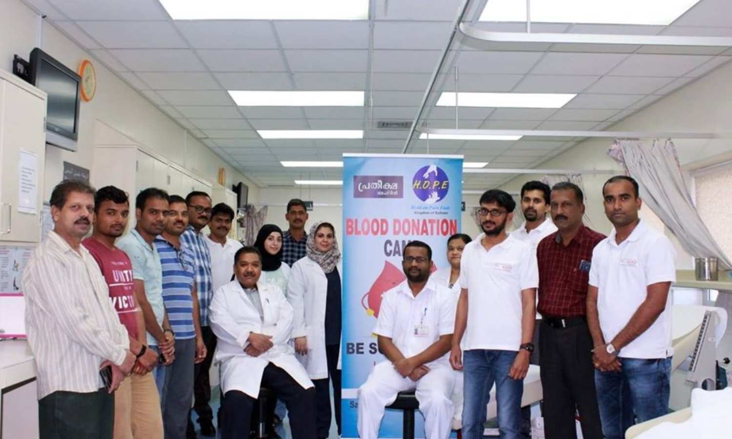 'പ്രതീക്ഷ ' (HOPE) ബഹ്റൈനിൽ രക്തദാന ക്യാമ്പ് സംഘടിപ്പിച്ചു. ഇത് നാലാം തവണയാണ് കൂട്ടായ്മയുടെ ആഭിമുഖ്യത്തിൽ രക്തദാന ക്യാമ്പ് ഒരുക്കിയത്. സൽമാനിയ ആശുപത്രിയിൽ വച്ച് നടന്ന ക്യാമ്പിൽ, അംഗങ്ങളും കുടുംബാംഗങ്ങളും മറ്റു അഭ്യുദയകാംഷികളുമടക്കം നൂറ്റി അൻപതിലധികം പേർ പങ്കെടുത്തു.