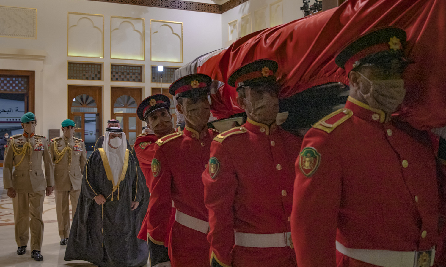 അന്തരിച്ച ബഹ്റൈൻ പ്രധാനമന്ത്രിയുടെ മൃതദേഹം ഹമദ് രാജാവ് ഏറ്റുവാങ്ങി