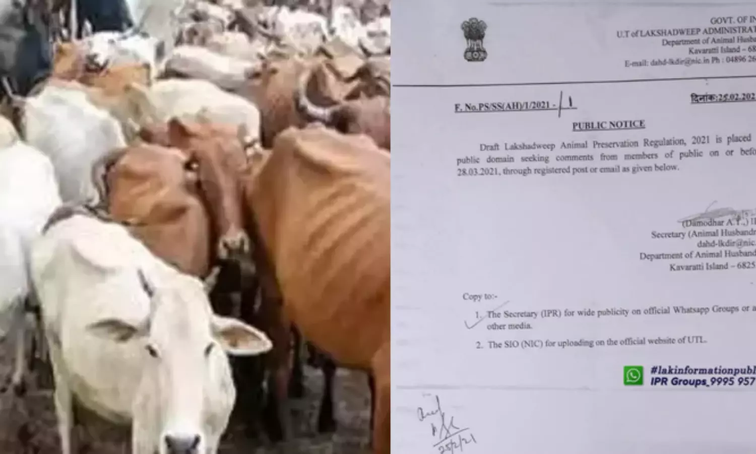ലക്ഷദ്വീപ് മൃഗസംരക്ഷണ നിയന്ത്രണ നിയമം 2021 എന്ന പേരിൽ നിയമത്തിന്റെ കരട് പുറത്തിറക്കി