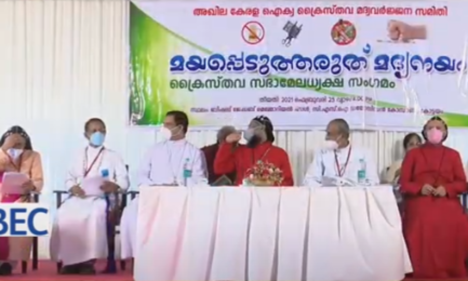 അഖില കേരള ഐക്യ ക്രൈസ്തവ മദ്യവർജ്ജന സമിതിയുടെ ആഭിമുഖ്യത്തിൽ നടന്ന പരിപാടിയിലാണ് ക്രൈസ്തവ സഭാ നേതൃത്വങ്ങൾ രാഷ്ട്രീയ നിലപാട് പ്രഖ്യാപിച്ചത്. ആദ്യം സംബന്ധിച്ച് കഴിഞ്ഞ തെരഞ്ഞെടുപ്പ് സമയത്ത് നൽകിയ വാഗ്ദാനങ്ങൾ പാലിക്കാത്ത സാഹചര്യത്തിലാണ് സർക്കാറിനെ സഭാനേതൃത്വം വിമർശിച്ചത്. മദ്യനയത്തിലും മത്സ്യ നയത്തിലും സർക്കാർ വെള്ളം ചേർത്തെന്ന് യാക്കോബായ സഭ നിരണം ഭദ്രാസനാധിപൻ ഗീവർഗീസ് മാർ കൂറിലോസ് കുറ്റപ്പെടുത്തി.