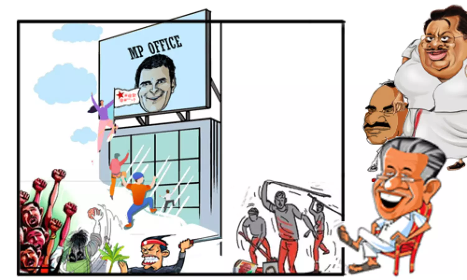 രാഹുല്ഗാന്ധിയെ ഇപ്രകാരം ചോദ്യം ചെയ്യുന്നതിനിടയിലാണ് വയനാട്ടിലെ ഇടതു വിദ്യാര്ഥി സംഘടനാ നേതാക്കള് വയനാട്ടില് അദ്ധേഹത്തിന്റെ ഓഫീസ് അടിച്ചു തകര്ത്തത്. സത്യം പറയാലോ അതും ആരും അറിഞ്ഞിട്ട് ചെയ്ത കാര്യമല്ല കേട്ടോ. വയനാട്ടിലെ വിദ്യാര്ഥി നേതാക്കള് തിരുവനന്തപുരത്ത് നിന്നുള്ള പാര്ട്ടി കാര്യാലയത്തിന്റെ ഉത്തരവനുസരിച്ചല്ല പ്രവര്ത്തിക്കുന്നത് എന്ന് തോന്നുന്നു. മിക്കവാറുമവര് മുദ്രാവാക്യങ്ങള് കടമെടുക്കുന്നത് ബി.ജെ.പി ഭരിക്കുന്ന കര്ണാടകയില് നിന്നാകാന് സാധ്യതയുണ്ട്. അതു കൊണ്ടാണ് എസ്.എഫ്.ഐക്കാര് സംഘ്പരിവാറിന്റെ ക്വട്ടേഷനാണ് ഏറ്റെടുത്തിരിക്കുന്നതെന്ന് പ്രതിപക്ഷ നേതാവ് പ്രഖ്യാപിച്ചത്. പതിവുപോലെ കാനം ഇത്തരം പരിപാടികളെ അപലപിച്ചിട്ടുണ്ട്. കേരളത്തില് എന്നും മാധ്യമങ്ങളിലൂടെ അപലപിക്കുന്ന എളിമയുള്ള നേതാവായി കാനം മാറിയിരിക്കുകയാണ്. പക്ഷെ, കോടിയേരി ഒരു തമാശയുമായി രംഗത്ത് വന്നു. കോണ്ഗ്രസ്സുകാര് ചൂണ്ടിക്കാണിച്ചു കൊടുക്കുന്നവരെ പിടിക്കുന്നവരായി പൊലീസ് മാറരുത് എന്നാണ് ഭീഷണി. അതിന്റെയര്ഥം പൊലീസുകാര്ക്ക് പിടിക്കിട്ടിക്കാണും. പാര്ട്ടി ഓഫീസില് നിന്നും അകത്താക്കേണ്ടവരുടെ ലിസ്റ്റ് തരുമെന്ന്.