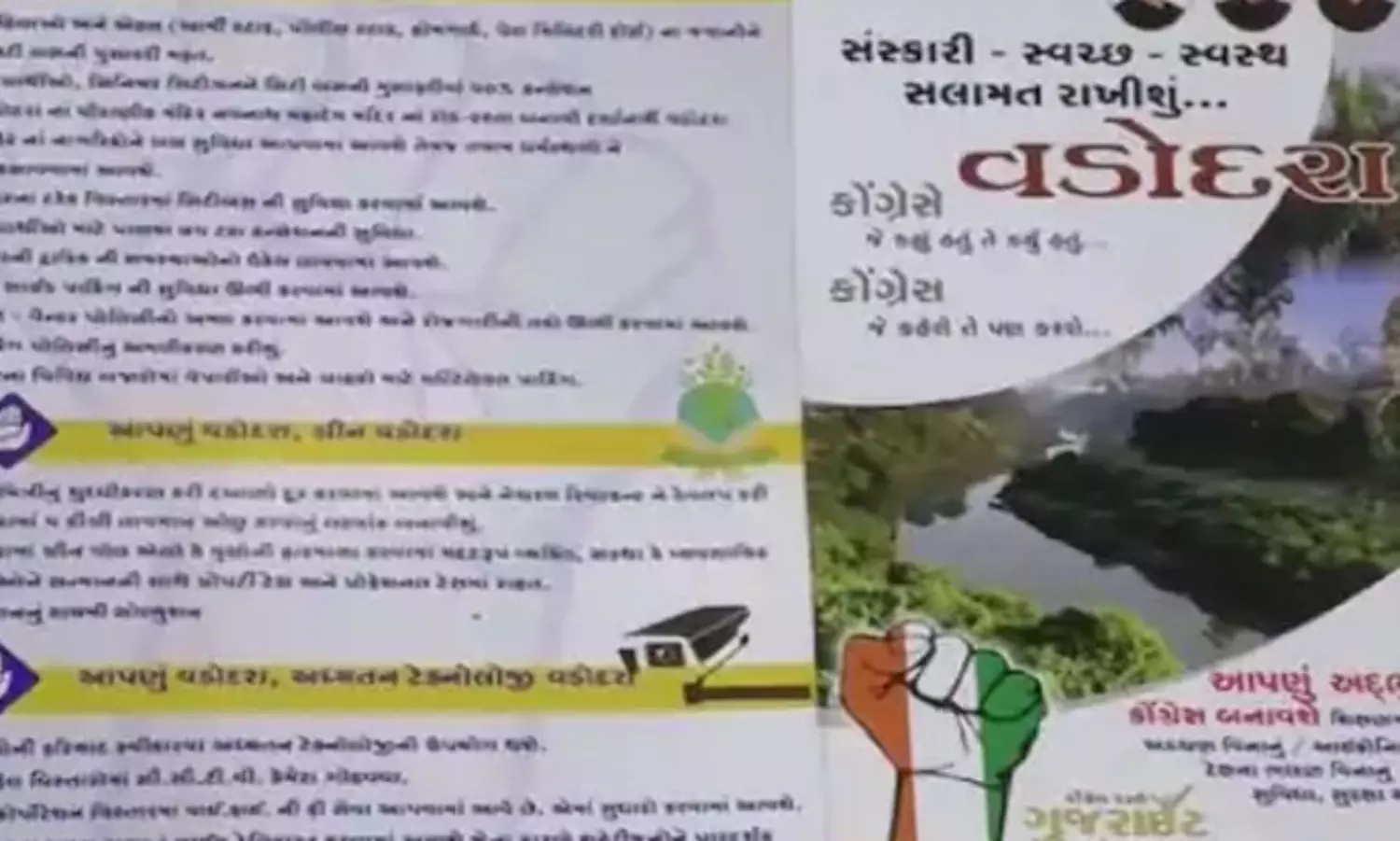 അധികാരത്തിലെത്തിയാൽ 'ഐക്കണിക് വഡോദര' സൃഷ്ടിക്കുമെന്നാണ് കോൺഗ്രസിന്റെ വാഗ്ദാനം. സൗജന്യ വിദ്യാഭ്യാസം വാഗ്ദാനം ചെയ്യുന്ന ആധുനിക സ്കൂൾ, എല്ലാ പ്രദേശത്തും സൗജന്യ ഇംഗ്ലീഷ് മീഡിയം സ്കൂൾ, മികച്ച ആരോഗ്യ സംവിധാനങ്ങൾ, കുറഞ്ഞ കെട്ടിട നികുതി തുടങ്ങിയവയെല്ലാം കോൺഗ്രസ് വാഗ്ദാനം ചെയ്യുന്നു.