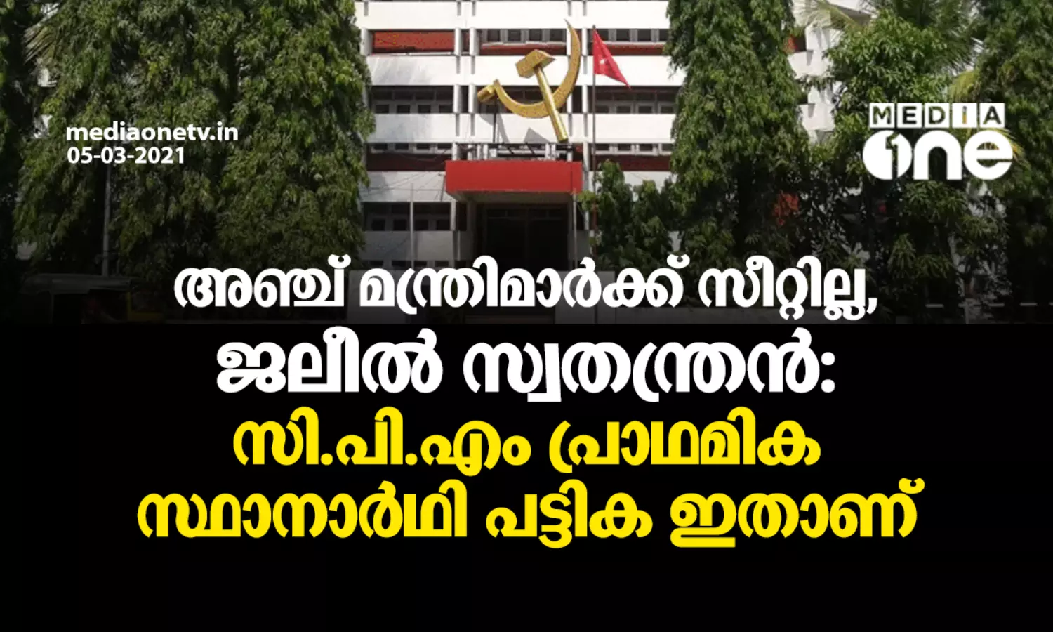 അഞ്ച് മന്ത്രിമാര്ക്ക് സീറ്റില്ല; സി.പി.എം പ്രാഥമിക സ്ഥാനാർഥി പട്ടിക ഇങ്ങനെ