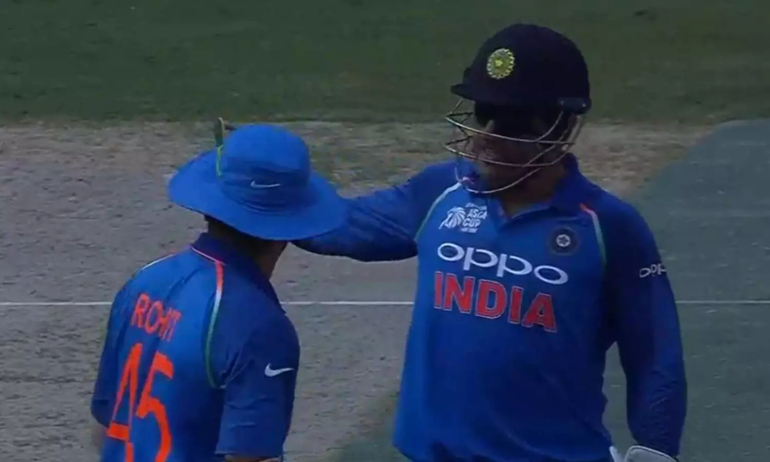 ഒമ്പതാം ഓവറിലെ മൂന്നാം പന്തിന് മുമ്പ് ധോണി ക്യാപ്റ്റന് രോഹിത് ശര്മ്മക്കടുത്തെത്തി. സ്ക്വയര് ലെഗില് ശിഖര് ധവാനെ നിര്ത്താനുള്ള ധോണിയുടെ നിര്ദ്ദേശം രോഹിത് ശര്മ്മ അനുസരിച്ചു.