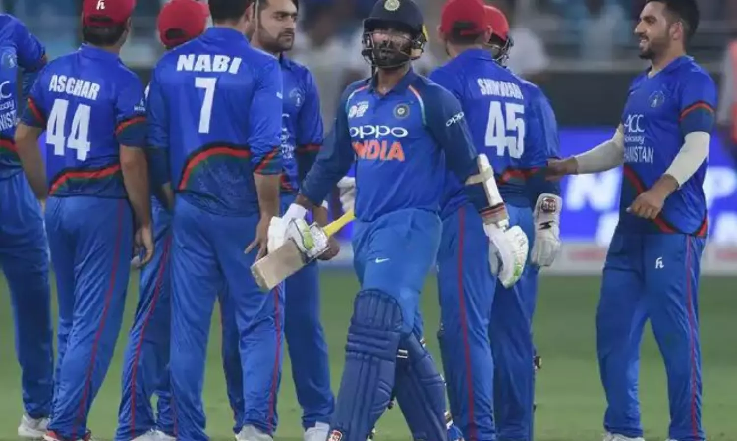അഫ്ഗാന് സ്കോര് 180 റണ്സിലെത്തിയപ്പോഴാണ് ഷെഹ്സാദിനെ ഉജ്ജ്വല ക്യാച്ചിലൂടെ കാര്ത്തിക് പുറത്താക്കിയത്. ഷെഹ്സാദ് 124 റണ്സ് ബാക്കി അഫ്ഗാന് കളിക്കാരും എക്സ്ട്രാസും കൂടി 56 റണ്സ് എന്നതായിരുന്നു അപ്പോഴത്തെ സ്കോര്ബോര്ഡിലെ കണക്ക്. വാലറ്റത്ത് മുഹമ്മദ് നബിയുടെ 56 പന്തില് 64 റണ് നേടിയ പ്രകടനം പിന്നീട് അഫ്ഗാന് സ്കോറിങിന് വേഗം കൂട്ടാന് സഹായിച്ചു. ഒടുവില് 50 ഓവറുകള് എണ്ണിത്തീര്ന്നപ്പോള് അഫ്ഗാനിസ്ഥാന് എട്ട് വിക്കറ്റിന് 255 റണ്സ് നേടി.