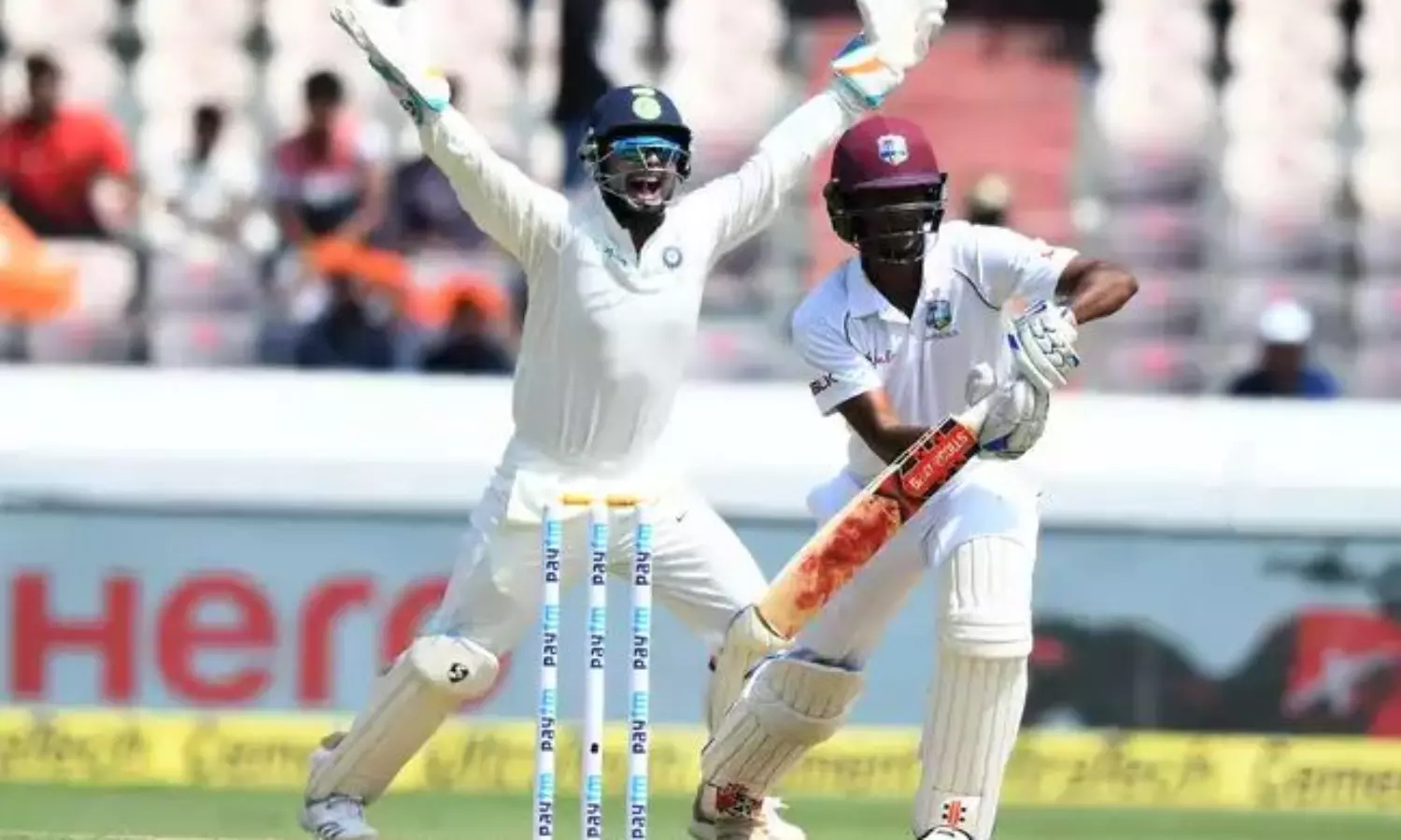 പിന്നീടങ്ങോട്ട് ചേസിന്റെ രക്ഷാപ്രവര്ത്തനമായിരുന്നു. ഒരറ്റത്ത് ഉറച്ചു നിന്ന് ഇന്ത്യന് ബോളര്മാരെ ചേസ് ചതച്ചു. ക്ഷമയും തന്ത്രവും ഒരുപോലെ ഉപയോഗിച്ചായിരുന്നു ചേസിന്റെ ബാറ്റിങ്. കൂട്ടിന് ഡൌറിച്ചും. എന്നാല് 30 റണ്സെടുത്ത് ഡൌറിച്ച് മടങ്ങിയതോടെ രക്ഷകന്റെ റോളില് നായകന് ഹോള്ഡെറെത്തി. ഒടുവില് ഉമേഷ് യാദവിന്റെ പന്തില് പന്തിന് പിടികൊടുത്ത് ഹോള്ഡെറും കളംവിട്ടു. അര്ധശതകം തികച്ച ശേഷമായിരുന്നു ഹോള്ഡെറി(52)ന്റെ മടക്കം. ഒന്നാം ദിനം കളി അവസാനിപ്പിക്കുമ്പോള് 98 റണ്സുമായി ചേസും രണ്ടു റണ്സുമായി ബിഷൂവുമാണ് ക്രീസില്. ഇന്ത്യക്കെന്നും തലവേദനയാകാറുള്ള എതിര് ടീമിന്റെ വാലറ്റത്തെ ഉമേഷ് യാദവ് എളുപ്പത്തില് മടക്കുകയായിരുന്നു.