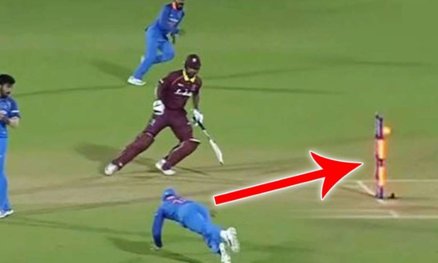 നാലാം ഏകദിനത്തിലെ വെസ്റ്റ് ഇന്ഡീസ് ബാറ്റിംങിന്റെ ആറാം ഓവറിലായിരുന്നു ആ ത്രോ പിറന്നത്. ഇന്ത്യ ഉയര്ത്തിയ 378 റണ്സിന്റെ കൂറ്റന് വിജയലക്ഷ്യത്തിന് മുന്നില് വെസ്റ്റിന്ഡീസ് പതറി നില്ക്കുന്ന സമയം. മാര്ലോണ് സാമുവല്സ് എക്സ്ട്രാ കവറിലേക്ക് മുട്ടിയിട്ട പന്തിനെ വേട്ടയാടി ചീറ്റയുടെ വേഗത്തില് കോഹ്ലിയെത്തി. ഓടണോ വേണ്ടയോ എന്ന് കീറണ് പവ്വല് ശങ്കിച്ച ആയൊരു നിമിഷം മുതലാക്കി കോഹ്ലിയുടെ അണ്ടര് ആം ത്രോ തിരിച്ച് ക്രീസിലെത്തുമ്പോഴേക്കും പവലിന് പുറത്ത് പോകാനുള്ള ചുവപ്പു വെളിച്ചം സ്റ്റംമ്പില് തെളിഞ്ഞിരുന്നു. അഞ്ച് പന്തുകള്ക്കിടെ വെസ്റ്റ് ഇന്ഡീസിന്റെ രണ്ടാം റണ് ഔട്ടായിരുന്നു അത്.