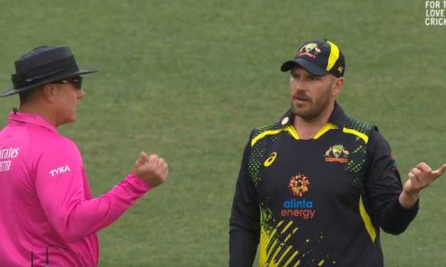 പെർത്തിൽ നടന്ന ആദ്യ ടി20യിൽ ഒൻപതാം ഓവറിലാണ് ഓസീസ് നായകനു നിയന്ത്രണം നഷ്ടപ്പെട്ടത്. ഇംഗ്ലീഷ് നായകൻ ജോസ് ബട്ലറും അലെക്സ് ഹെയിൽസുമായിരുന്നു ഈ സമയത്ത് ക്രീസിലുണ്ടായിരുന്നത്. കാമറോൺ ഗ്രീൻ എറിഞ്ഞ നാലാമത്തെ പന്തിൽ ബട്ലർ അപ്പർ കട്ടിന് ശ്രമിച്ചെങ്കിലും പന്ത് വിക്കറ്റ് കീപ്പർ മാത്യു വെയ്ഡിന്റെ കൈയിലൊതുങ്ങി. ബാറ്റിൽ ടച്ചുണ്ടെന്ന് ചൂണ്ടിക്കാട്ടി വെയ്ഡ് അപ്പീൽ ചെയ്തെങ്കിലും അംപയർ ഔട്ട് നൽകിയില്ല.