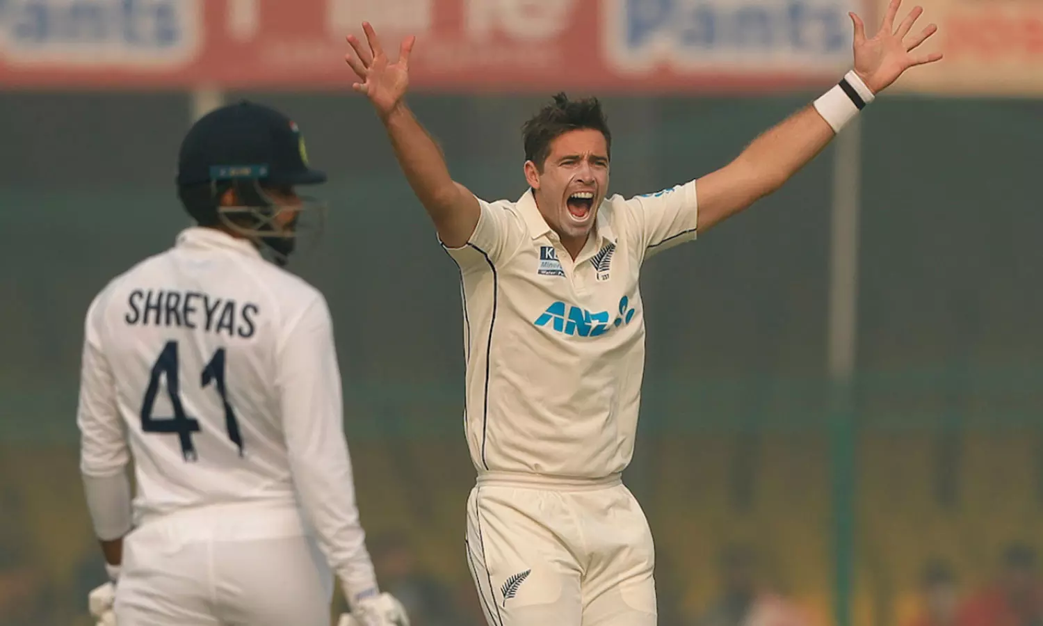 കിവി ബൗളിങ് നിരയിൽ ആദ്യദിനം ഇന്ത്യൻ മുൻനിരയെ വിറപ്പിച്ചത് കൈൽ ജാമീഷനായിരുന്നുവെങ്കിൽ ഇന്ന് സൗത്തിയുടെ ദിനമായിരുന്നു. ടെസ്റ്റ് കരിയറിലെ 12-ാമത്തെ അഞ്ച് വിക്കറ്റ് നേട്ടമാണ് സൗത്തി ഇന്ന് സ്വന്തമാക്കിയത്. ജാമീഷൻ മൂന്നും അജാസ് രണ്ടും വിക്കറ്റുകൾ നേടി.