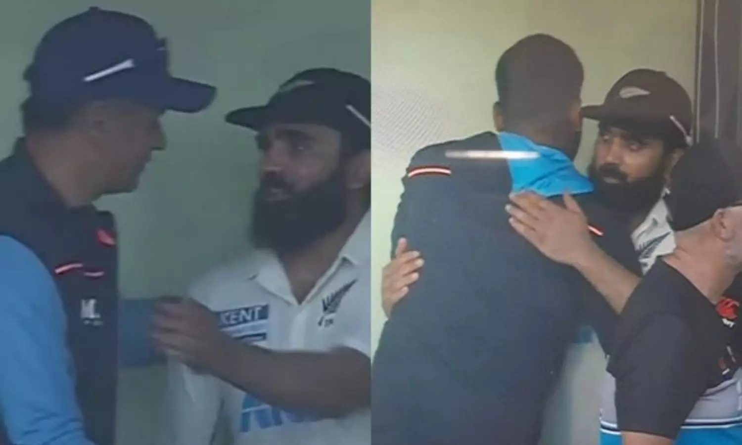അതിന് പിന്നാലെയാണ് മത്സരശേഷം വിരാട് കോഹ്ലിയും രാഹുല് ദ്രാവിഡും അജാസിനെ അഭിനന്ദിക്കാനായി ന്യൂസിലന്ഡ് ഡ്രസിങ് റൂമിലെത്തിയത്. ഇതിന്റെ വീഡിയോ മിനുട്ടുകള്ക്കുള്ളിലാണ് സോഷ്യല്മീഡിയ ഏറ്റെടുത്തത്.