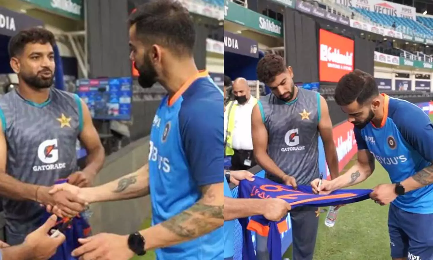Summary: Virat Kohli hands over a signed jersey to Pakistan's Haris Rauf post the India Vs Pakistan match in Asia Cup