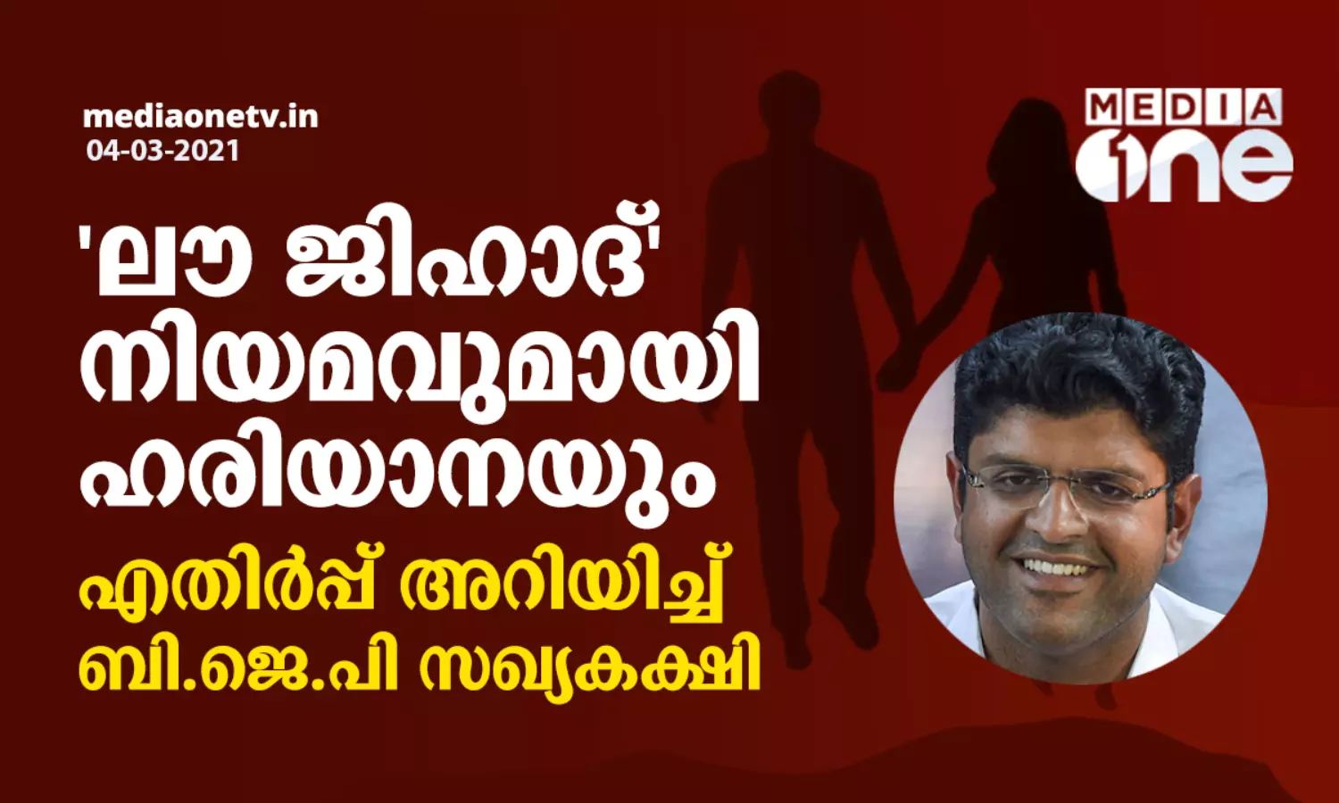 ‘ലൗ ജിഹാദ്’ തടയാനുള്ള നിയമ നിർമാണവുമായി ഹരിയാനയിലെ ബി.ജെ.പി സർക്കാർ. എന്നാല് ലൗ ജിഹാദ് എന്ന പ്രയോഗത്തെ അംഗീകരിക്കുന്നില്ലെന്നും നിയമനിർമാണത്തെ പിന്തുണക്കില്ലെന്നും ബി.ജെ.പി സഖ്യകക്ഷിയായ ജൻനായക് ജനതാ പാർട്ടി (ജെജെപി) നേതാവും ഉപമുഖ്യമന്ത്രിയുമായ ദുഷ്യന്ത് ചൗട്ടാല വ്യക്തമാക്കി.