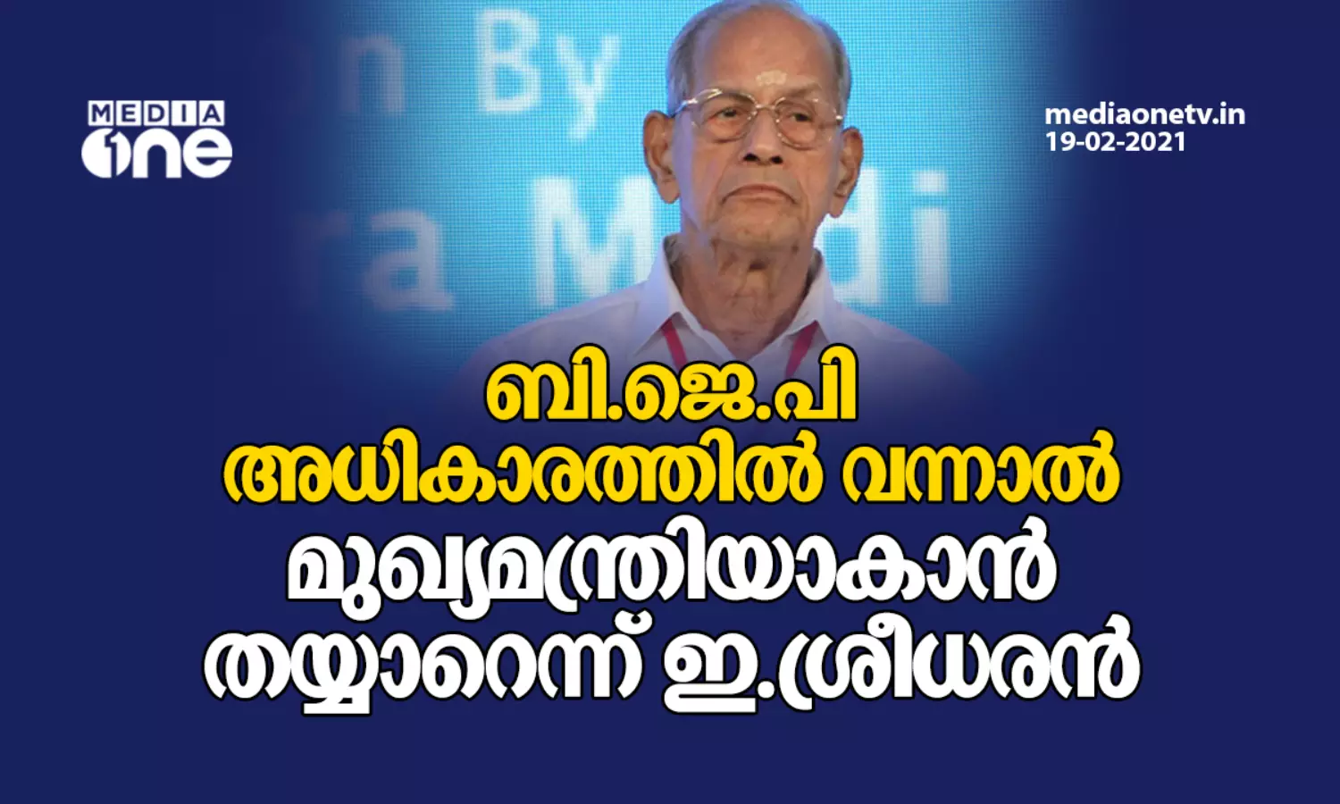 ബി.ജെ.പി അധികാരത്തിൽ വന്നാൽ മുഖ്യമന്ത്രിയാകാൻ തയ്യാറെന്ന് ഇ.ശ്രീധരൻ