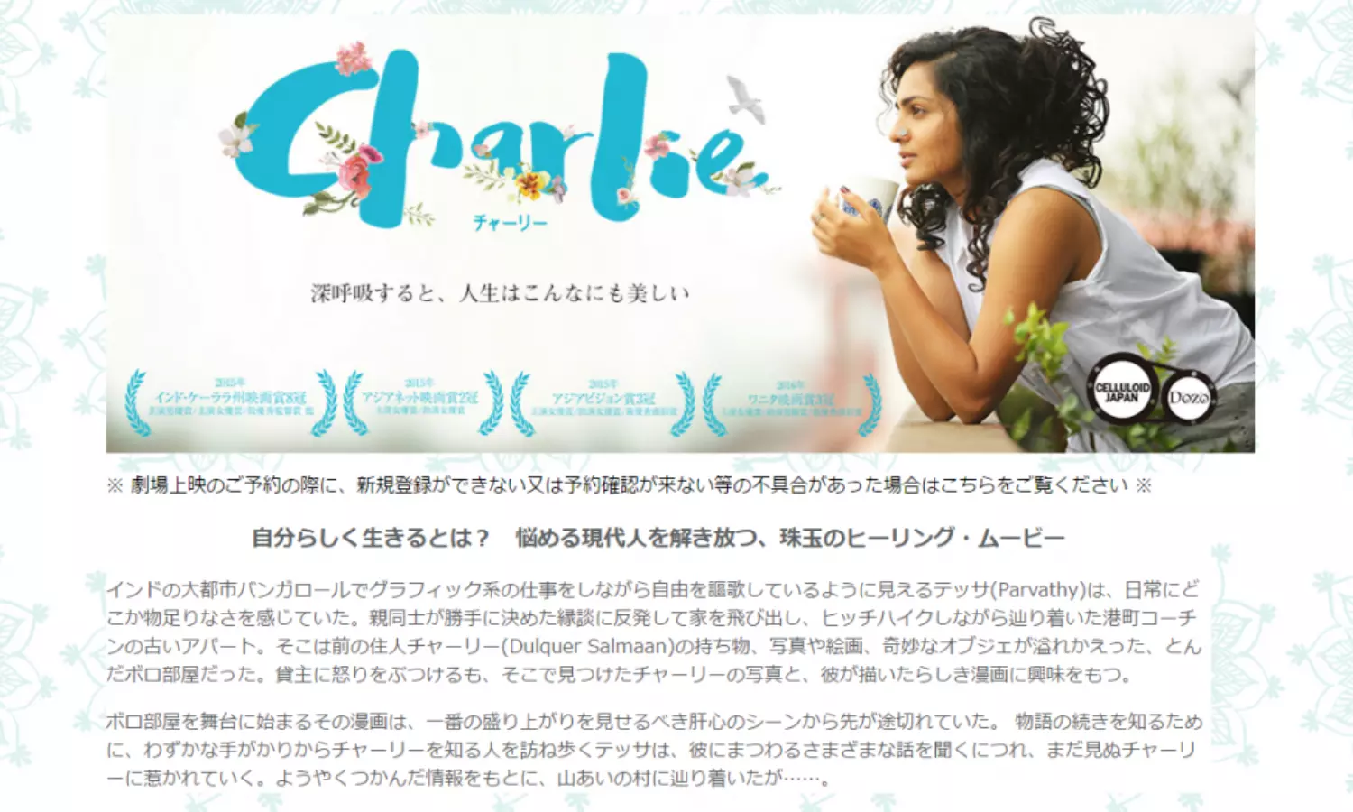ദുല്ഖര് സല്മാന് മികച്ച നടനുള്ള സംസ്ഥാന അവാര്ഡ് നേടിക്കൊടുത്ത ചാര്ളി ജപ്പാനിലും തരംഗമാവുന്നു. ഈ മാസം 15നാണ് ജപ്പാനില് റിലീസ് ചെയ്ത ചെയ്ത ചിത്രം കുറഞ്ഞ കാലം കൊണ്ട് ജപ്പാന്കാരെ കയ്യിലെടുത്തു. ജപ്പാനീസ് സബ്ടൈറ്റിലോടെ പ്രദര്ശിപ്പിക്കുന്ന ചിത്രത്തിന് മികച്ച പ്രതികരണമാണ് ലഭിക്കുന്നത്. ജപ്പാനീസ് വിതരണക്കമ്പനിയായ ഡോസൊയാണ് ചിത്രം റിലീസ് ചെയ്തത്.