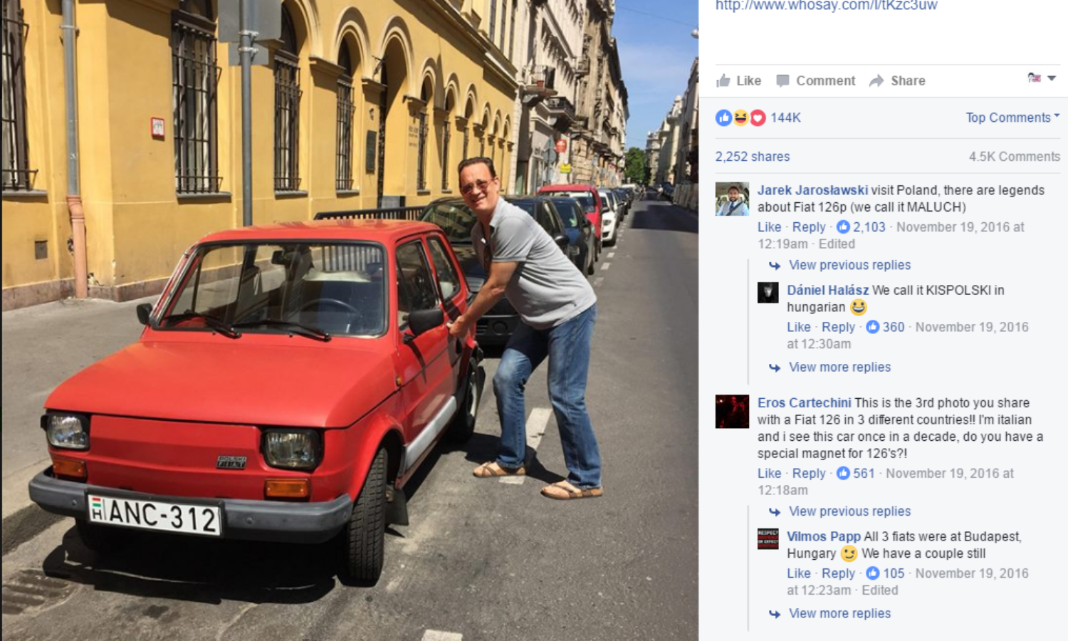 ഈ ഫിയറ്റ് 126 പി അഥവാ പോളണ്ടുകാര് ഓമനിച്ച് വിളിക്കുന്ന ടോട്ലറാണ് ടോം ഹാങ്ക്സിന് സമ്മാനിക്കുന്നതിനായി ബില്സ്കോ ബൈല നഗരവാസികള് തയ്യാറാക്കുന്നത്. എനിക്കൊരു പുതിയ കാര് കിട്ടി എന്ന തരത്തില് തമാശച്ചിരിയുമായി ടോം ഹാങ്ക്സ് തന്റെ ട്വിറ്റര് അക്കൌണ്ടില് ടോട്ലറിനൊപ്പമുള്ള ഫോട്ടോ പോസ്റ്റ്ചെയ്തു. കഴിഞ്ഞില്ല തന്റെ ഫേസ് ബുക്ക് പേജില് തുടര് ചിത്രങ്ങളും ഉള്പ്പെടുത്തി. ഹാങ്ക്സ് തമാശക്ക് ചെയ്തതാണെങ്കിലും അത് പോളണ്ടുകാര്ക്ക് കൊള്ളേണ്ടിടത്ത് കൊണ്ടു. 1970കളില് നിരത്തുകളിലെത്തിയ പോളണ്ട് മേഡ് ടോട്ലറുകള് അവരുടെ അഭിമാന ചിഹ്നങ്ങളില് ഒന്നാണെന്ന് ടോം ഹാങ്ക്സ് അറിഞ്ഞിരിക്കില്ല. പോളണ്ടിനെക്കുറിച്ച് ഒരക്ഷരം മിണ്ടരുതെന്ന് പറഞ്ഞ് ബീല്സ്കോ ബൈല സ്വദേശികളില് ചിലര് ഹാങ്ക്സിനുള്ള നല്കേണ്ട മറുപടിയെക്കുറിച്ച് തലപുകച്ചു. അവരുടെ ആശയമാണ് ഒരു കാര് തന്നെ ഹാങ്ക്സിന് സമ്മാനിച്ചേക്കാം എന്നത്. പക്ഷേ ജരാനര ബാധിച്ച ടോട്ലറിനെയല്ല, 1970 കളിലെ അതേ പ്രൌഡിയോടെ നല്കണം. അതിനായി അവര് ചേര്ന്ന് ധനസമാഹരണം നടത്തി. പഴയ ഒരുടോട്ലര് വാങ്ങി. മികച്ച എന്ജിനീയര്മാരെ ഏല്പ്പിച്ച് അതിന്റെ യൌവ്വനം വീണ്ടെടുത്തു. ഫിയറ്റ് കമ്പനിയില് നിന്ന് യഥാര്ത്ഥ സ്പെയര് പാര്ട്സുകള് എത്തിച്ചു.