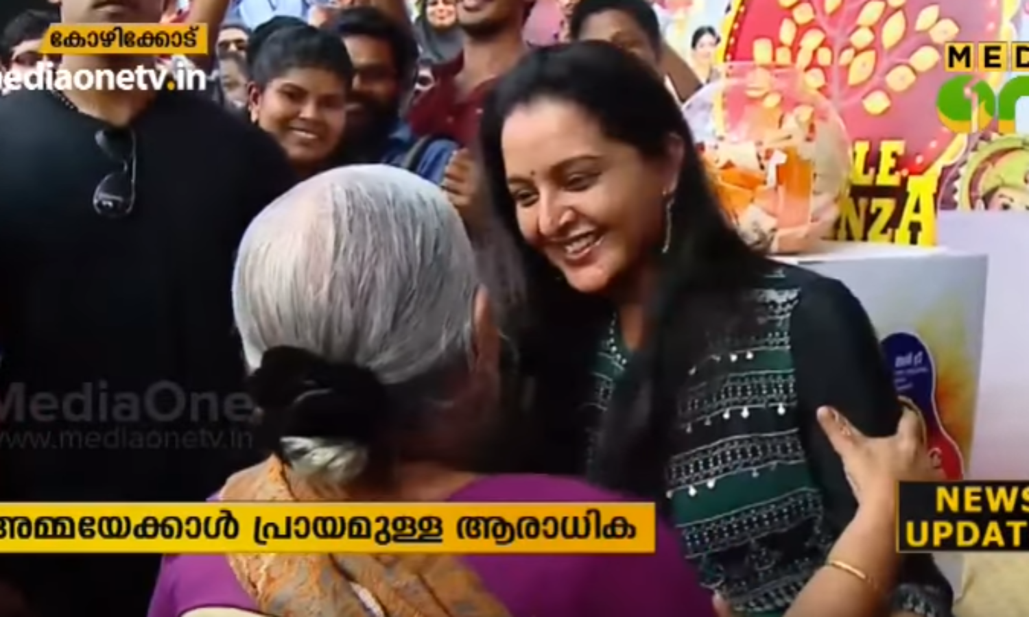 അമ്മയെക്കാള്‍ പ്രായമുള്ള മഞ്ജുവിന്റെ ആരാധികയെ സംബന്ധിച്ച മീഡിയാവണ്‍ വാര്‍ത്ത വൈറലാകുന്നു. കഴിഞ്ഞ ദിവസം കോഴിക്കോട്ടെ ഒരു സ്വകാര്യ പരിപാടിക്കെത്തിയപ്പോഴായാണ് മലയാളിയുടെ പ്രിയപ്പെട്ട നടി മഞ്ജു വാര്യരുടെ അടുത്ത് ഇവരെത്തിയത്. അമ്മയെക്കാള്‍ പ്രായമുള്ള ഈ ആരാധികയുടെ സ്‌നേഹത്തോടെയുള്ള തലോടല്‍ മഞ്ജുവിന്റെ മനം കവരുകയായിരുന്നു.
