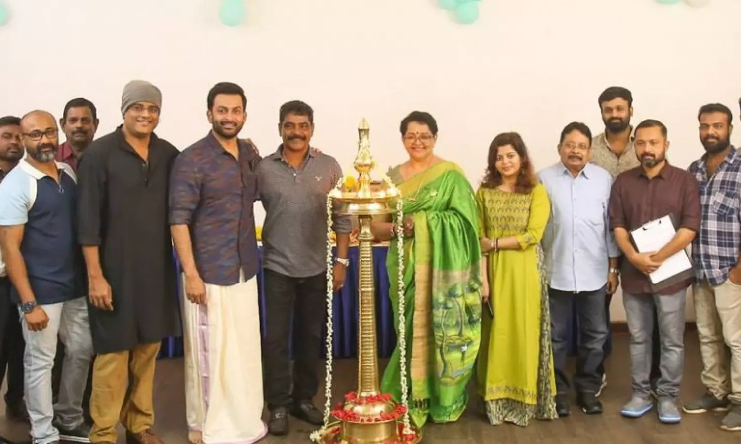 പൃഥ്വിരാജ്, മല്ലിക സുകുമാരന്, സുപ്രിയ, മുരളി ഗോപി, സുജിത് വാസുദേവ് തുടങ്ങിയവര് പൂജ ചടങ്ങില് പങ്കെടുത്തു. ഈ മാസം 18ന് തിരുവനന്തപുരത്താണ് ചിത്രീകരണം തുടങ്ങുക.
