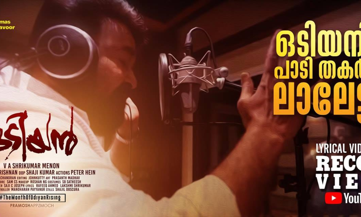 മോഹന്ലാല് സിനിമയില് പാടുമ്പോഴൊക്കെ ആ പാട്ട് ഹിറ്റ് ചാര്ട്ടില് ഇടംപിടിക്കാറുണ്ട്. ഡ്രാമയിലെ പണ്ടാരാണ്ട് എന്ന തകര്പ്പന് പാട്ടിന് ശേഷം വീണ്ടും ലാല് മൈക്കിന് മുന്നിലെത്തിയിരിക്കുകയാണ്. അതും ആരാധകര് ആവേശത്തോടെ കാത്തിരിക്കുന്ന ഒടിയന് വേണ്ടിയാണ് ലാലേട്ടന്റെ പാട്ട്.
