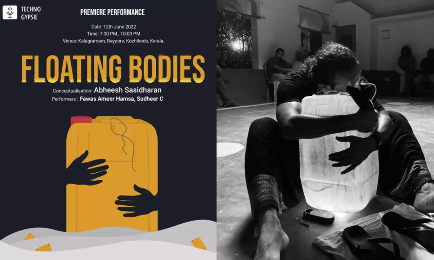അപരിചിതമായ മണ്ണിലെത്തപ്പെട്ട രണ്ട് ശരീരങ്ങളാണ് അരങ്ങിൽ. നിസ്സഹായതയും, പേടിയും, പ്രതീക്ഷയും അനുഭവിക്കുന്ന അവർ ചലിക്കുന്നു. ചിലപ്പോൾ നിശ്ചലരാകുന്നു. ആ സന്ദർഭത്തെ സമാന്തരമായി സ്വന്തം ശരീരങ്ങളിലൂടെ ഒരു മൂവ്മെൻറ് ആർട്ടിസ്റ്റും ഒരു ഫോട്ടോഗ്രാഫറും അവതരിപ്പിക്കുന്നതാണ് 'ഫ്ലോട്ടിങ് ബോഡീസ്'. ശബ്ദത്തിൻ്റെ സാധ്യതകളുപയോഗിച്ച് ആ അവസ്ഥയെ അന്വേഷിക്കുന്ന സൗണ്ട് ആർട്ടിസ്റ്റും ഒപ്പമുണ്ട്. കൊറിയോഗ്രാഫറും മൂവ്മെന്റ് ആർട്ടിസ്റ്റുമായ ഫവാസ് അമീർ ഹംസ, തിയറ്റർ ഫോട്ടോഗ്രാഫർ സുധീർ സി എന്നിവരാണ് അരങ്ങിൽ. സൗൻഡ്സ്കേപ്പ് രൂപകൽപന ലാമിയും, കുമാരദാസ് റ്റി എൻ ക്രിയേറ്റീവ് ഇൻപുട്സും, ശ്രീദേവി ഡി ക്രിട്ടിക്കൽ ഇൻപുട്സും, പ്രജീഷ് എ.ഡി പോസ്റ്റർ, ബ്രോഷർ എന്നിവ നിർവഹിച്ചിരിക്കുന്നു.