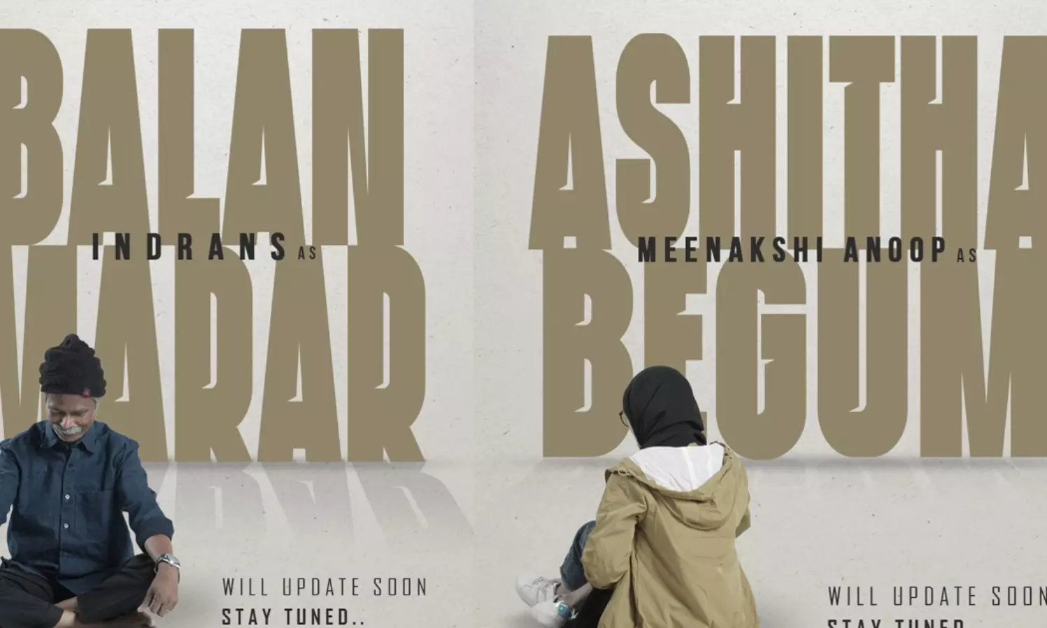 SHE IS COMING SOON! STAY TUNED എന്ന് മീനാക്ഷിയെ ആശംസിച്ച് കൊണ്ടാണ് ഇന്ദ്രൻസ് മീനാഷിയുടെ പോസ്റ്റർ പങ്കുവെച്ചിരിക്കുന്നത്. മീനാക്ഷി അഷിത ബീഗം ആയി വരുന്നു എന്നാണ് പോസ്റ്ററിൽ സൂചിപ്പിച്ചിരിക്കുന്നത്. പുറം തിരിഞ്ഞിരിക്കുന്ന മീനാക്ഷിയുടെ വിദൂരദൃശ്യമാണ് പോസ്റ്ററിലുള്ളത്. HE IS COMING SOON! STAY TUNED എന്ന് അഭിസംബോധന ചെയ്തു കൊണ്ടാണ് മീനാക്ഷി അനൂപ് ഇന്ദ്രൻസിൻ്റെ ചിത്രമുള്ള പോസ്റ്റർ പങ്കുവെച്ചിരിക്കുന്നത്. ഇന്ദ്രൻസ് ബാലൻ മാരാർ ആയിവരുന്നു എന്നാണ് പോസ്റ്ററിലുള്ളത്. തറയിൽ ഇരിക്കുന്ന വ്യത്യസ്ത ഗെറ്റപ്പിലുള്ള ഇന്ദ്രൻസിൻ്റെ ചിത്രവും പോസ്റ്ററിലുണ്ട്.
