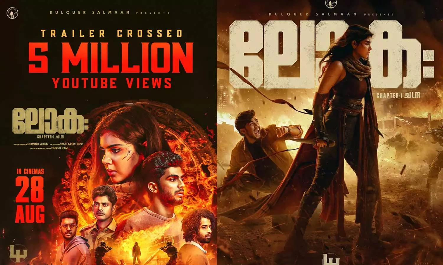 അഞ്ചു മില്യൺ കാഴ്ചക്കാരുമായി 'ലോക - ചാപ്റ്റർ വൺ: ചന്ദ്ര' ട്രെയ്ലർ;ചിത്രം 28 ന് തിയേറ്ററുകളില്