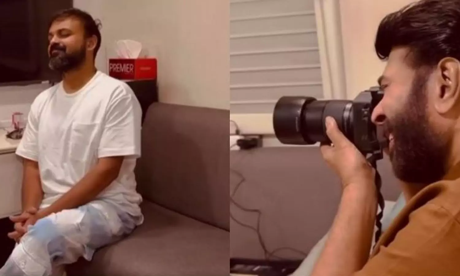 മമ്മൂട്ടിക്കായി പോസ് ചെയ്യുകയും ക്ലിക്കിന് ശേഷം അത് ആസ്വദിക്കുകയും ചെയ്യുന്ന കുഞ്ചാക്കോ ബോബനെ വിഡിയോയില് കാണാം