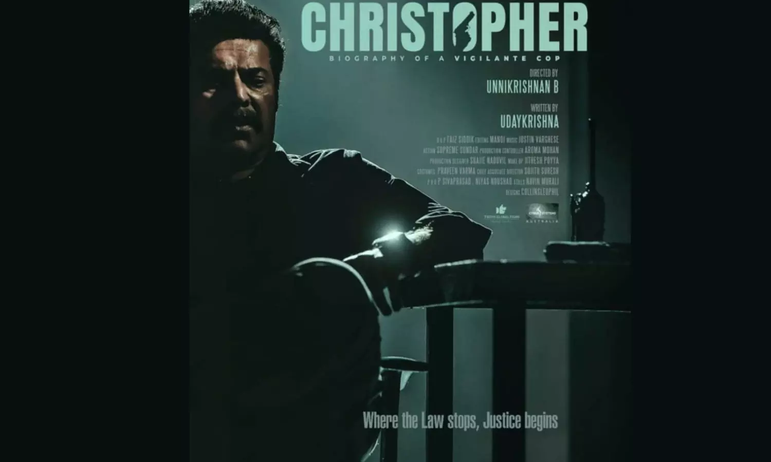 മമ്മൂട്ടിയെ നായകനാക്കി ബി.ഉണ്ണികൃഷ്ണൻ സംവിധാനം ചെയ്യുന്ന സിനിമയുടെ ഫസ്റ്റ്ലുക്ക് പോസ്റ്റർ പുറത്തിറക്കി. "നിയമം എവിടെ നിർത്തുന്നുവോ, അവിടെ നീതി ആരംഭിക്കുന്നു" എന്നാണ് പോസ്റ്ററിലുള്ളത്. 'ക്രിസ്റ്റഫർ' എന്ന് പേരിട്ട ചിത്രം നിർമിക്കുന്നത് ആർ.ഡി ഇലുമിനേഷൻസ് ആണ്.