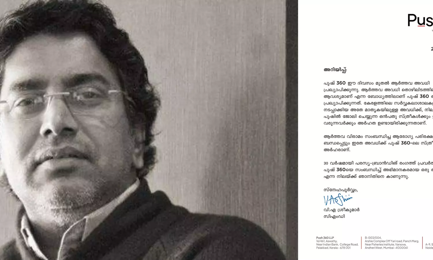 ആർത്തവ അവധി തൊഴിലിടത്തിലും ആവശ്യമാണ്: Push 360യില് ആര്ത്തവ അവധി പ്രഖ്യാപിച്ച് വി എ ശ്രീകുമാർ