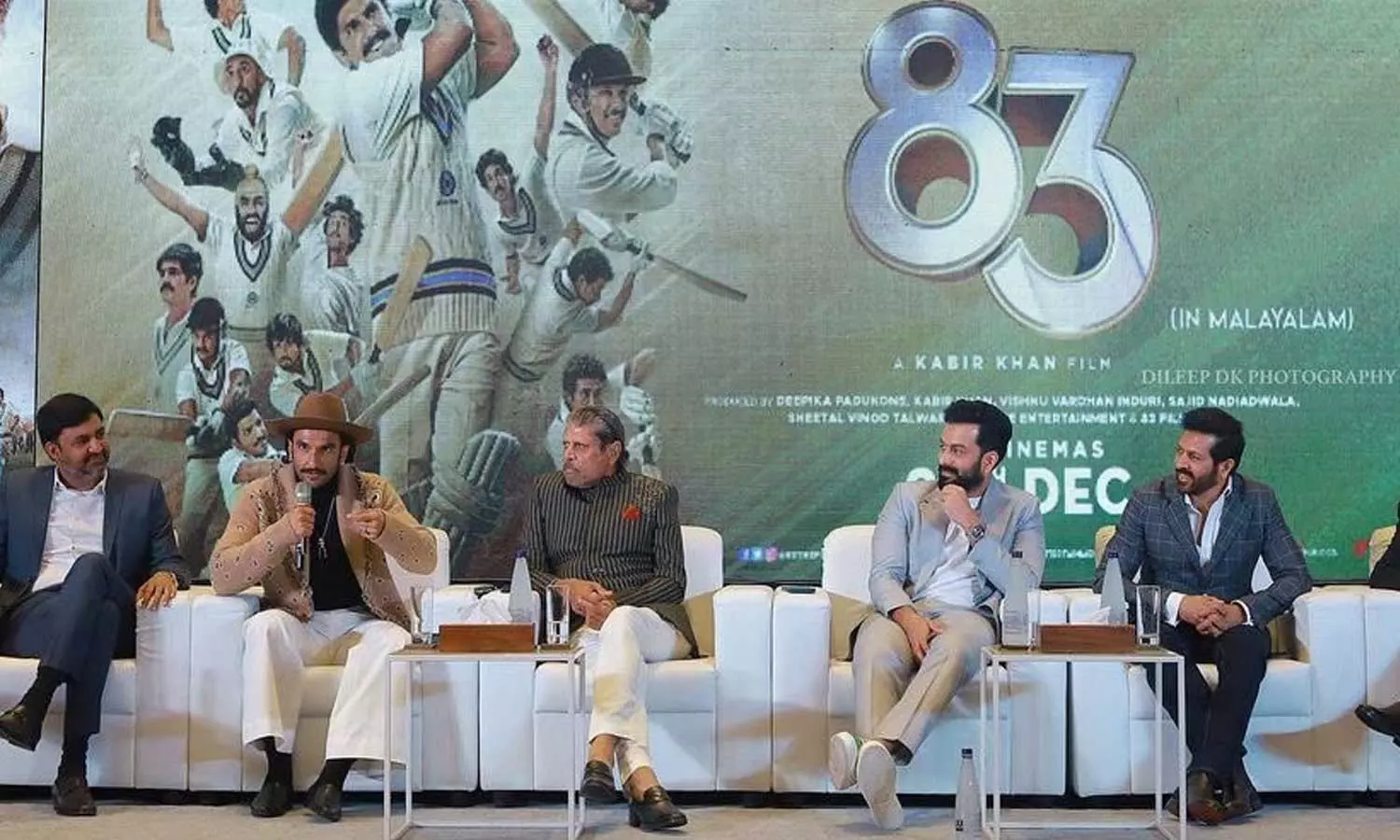 സിനിമയുടെ പ്രമോഷന്റെ ഭാഗമായി ഇന്ത്യക്ക് വേണ്ടി കപ്പുയർത്തിയ താരങ്ങളായ കപിൽ ദേവും കെ ശ്രീകാന്തും ചിത്രത്തിൽ കപിൽ ദേവായി എത്തുന്ന രൺവീർ സിംഗും കൊച്ചിയിലെത്തിയിരുന്നു.