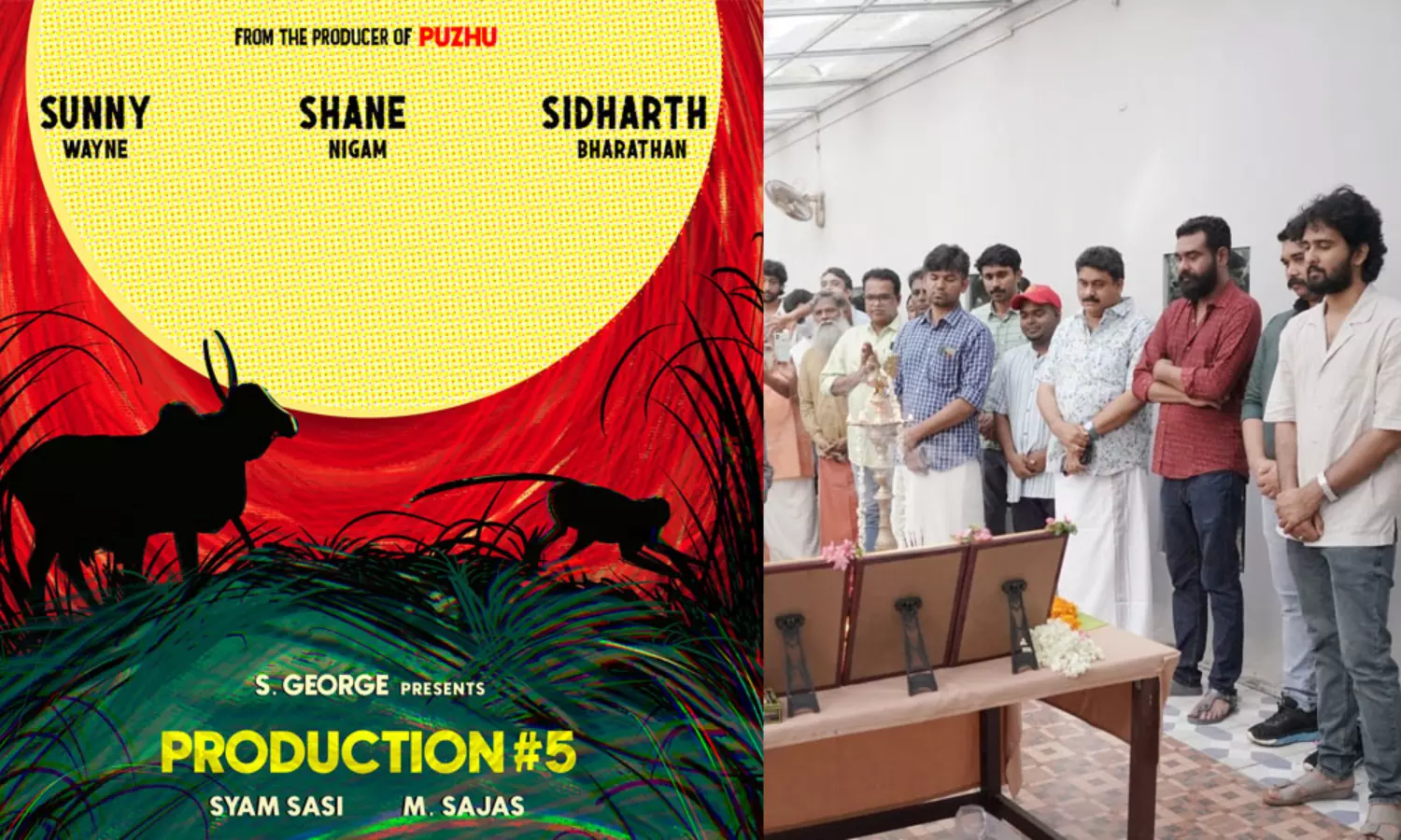 സിനിമയുടെ പൂജയിൽ അണിയറ പ്രവർത്തകർക്കൊപ്പം ഷെയിന് നിഗം, സണ്ണി വെയ്ൻ, സിദ്ധാർഥ് ഭരതൻ തുടങ്ങിയവർ പങ്കെടുത്തു