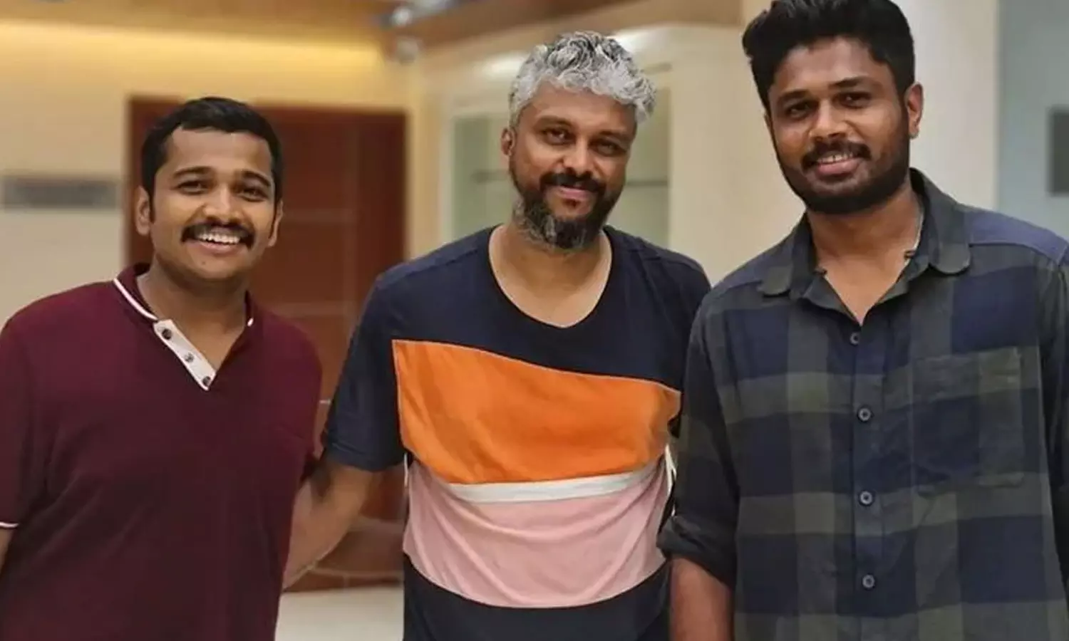 അയർലാൻഡിന് എതിരെയുള്ള പരമ്പരയിലേക്ക് തിരഞ്ഞെടുക്കപ്പെട്ട സഞ്ജു ട്രെയിനിങ് സെഷനുകൾക്ക് വേണ്ടി പോകുന്നതിനു മുമ്പാണ് ചിത്രത്തിന്റെ സെറ്റിലെത്തിയത്.