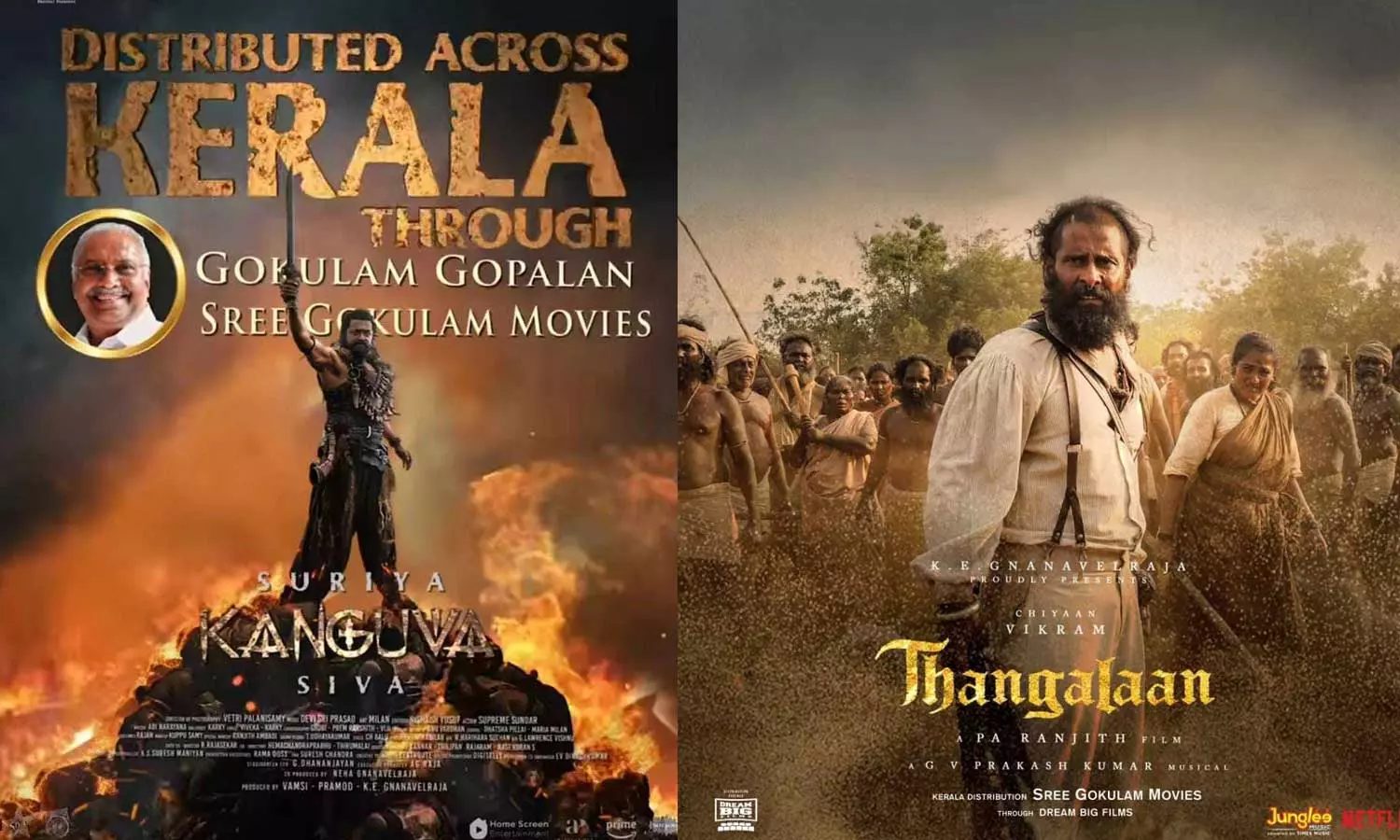 നടന് വിക്രം നായകനാകുന്ന 'തങ്കലാനും' സൂര്യയുടെ 'കങ്കുവയും' കേരളത്തിൽ പ്രദർശനത്തിനെത്തിക്കാന് ശ്രീ ഗോകുലം മൂവീസ്. സ്റ്റുഡിയോ ഗ്രീനിന്റെ ബാനറിൽ കെ.ഇ ജ്ഞാനവേൽ രാജ നിർമിക്കുന്ന വിക്രം - പാ രഞ്ജിത് ചിത്രമാണ് തങ്കലാന്. ഇതിന്റെയും സൂര്യ - ശിവ ചിത്രമായ കങ്കുവയുടെയും കേരളത്തിലെ വിതരണാവകാശം ശ്രീ ഗോകുലം മൂവീസ് സ്വന്തമാക്കി.