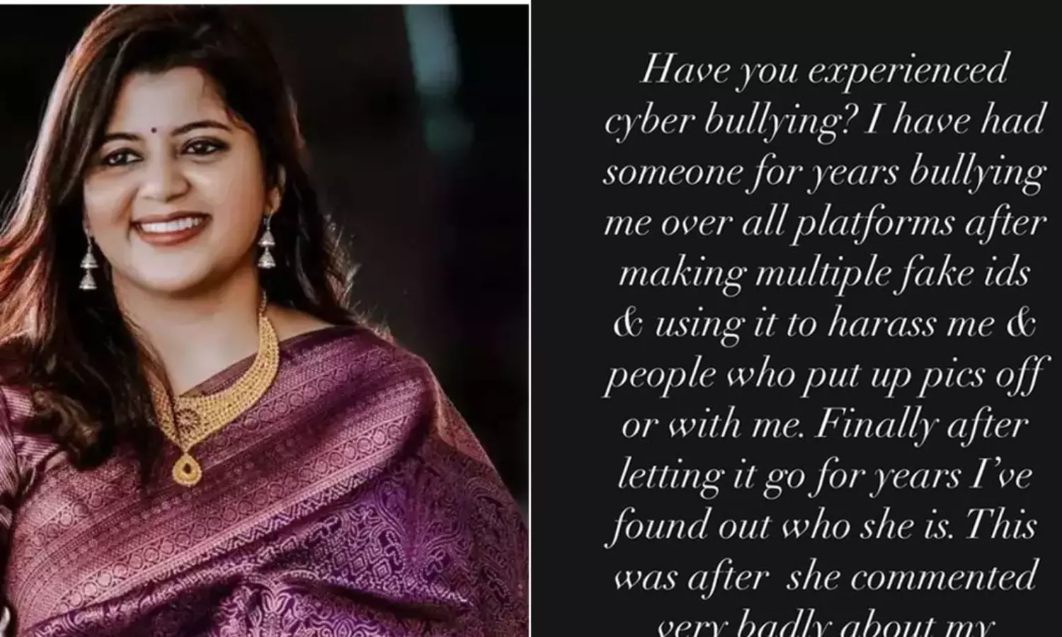 സുപ്രിയയുടെ വാക്കുകൾ ഇങ്ങനെ 'നിങ്ങൾ സൈബർ ബുള്ളിയിംഗ് നേരിട്ടിട്ടുണ്ടോ? വർഷങ്ങളായി എല്ലാ പ്ലാറ്റ്ഫോമുകളിലുമായി എന്നെ ഒരാൾ ബുള്ളിയിംഗ് ചെയ്യുന്നു. നിരവധി വ്യാജ അക്കൗണ്ടുകളുണ്ടാക്കി അവയെ എന്നെയും എനിക്കൊപ്പമുള്ളവരേയും അപമാനിക്കാൻ ഉപയോഗിക്കുകയാണ്. വർഷങ്ങളോളാം അതെല്ലാം വിട്ടു കളഞ്ഞ ഞാൻ ഒടുവിൽ ആ ആളെ കണ്ടെത്തിയിരിക്കുകയാണ്.