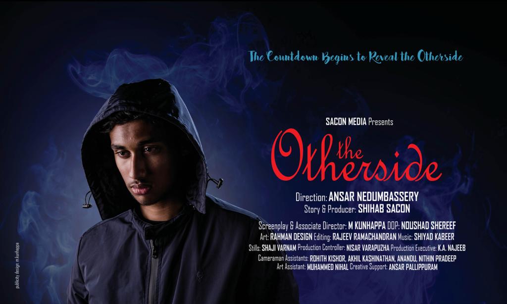 സാകോൺ മീഡിയയുടെ ബാനറിൽ അൻസാർ നെടുമ്പാശ്ശേരി സംവിധാനം ചെയ്യുന്ന ദി അദർസൈഡ് ഹ്രസ്വ ചിത്രത്തിന്റെ ആദ്യ കാരക്ടർ പോസ്റ്റർ പുറത്തിറങ്ങി. പ്രശസ്ത നടൻ ജയൻ ചേർത്തലയുടെ ഫേസ്ബുക്ക് പേജിലൂടെയാണ് പോസ്റ്റർ പ്രകാശനം ചെയ്തത്. ചിത്രത്തിന്റെ മുമ്പിറങ്ങിയ പോസ്റ്ററുകളുടെ തുർച്ചയായി, ഇരുട്ടിലേക്കു തിരിഞ്ഞു നിന്ന കഥാപാത്രത്തിന്റെ മുഖം വ്യക്തമാവുന്ന രീതിയിൽ മോഷന് പോസ്റ്ററായാണ് ഇത് തയാറാക്കിയിരിക്കുന്നത്. The Countdown Begins to Reveal the Otherside എന്ന അടിക്കുറിപ്പോടെയായിരുന്നു മുൻ പോസ്റ്ററുകൾ. ചിത്രത്തിൽ മുഖ്യകഥാപാത്രത്തെ അവതരിപ്പിക്കുന്ന മുഹമ്മദ് രന്തീസിയാണ് വെളിച്ചത്തിലേക്കു വരുന്ന താരം. ആർട്ടിസ്റ്റ് എം. കുഞ്ഞാപ്പ ഡിസൈൻ ചെയ്ത പോസ്റ്റർ ആദ്യ ദിവസം തന്നെ ഏറെ ശ്രദ്ധിക്കപ്പെട്ടു.