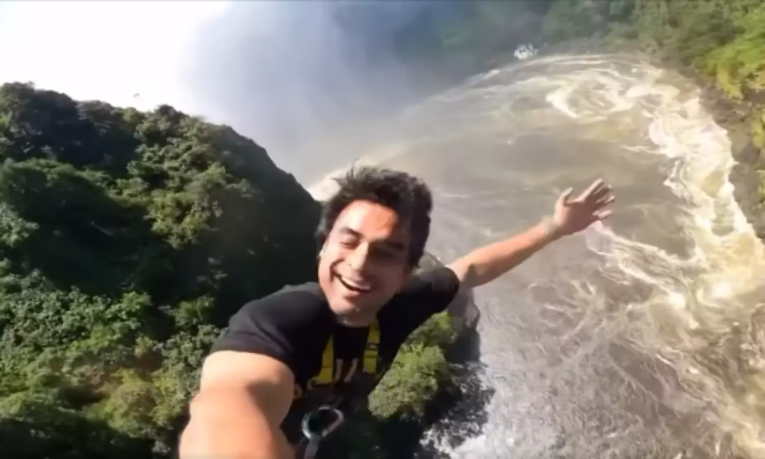 സാംബെസി നദിക്കു കുറുകെയുള്ള ഹിസ്റ്റോറിക് പാലത്തില്‍ നിന്നാണ് ബഞ്ചി ജമ്പിങ് നടത്തിയത്