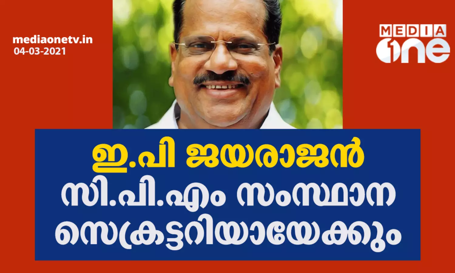 ഇ പി ജയരാജന് സി.പി.എം സംസ്ഥാന സെക്രട്ടറിയായേക്കും