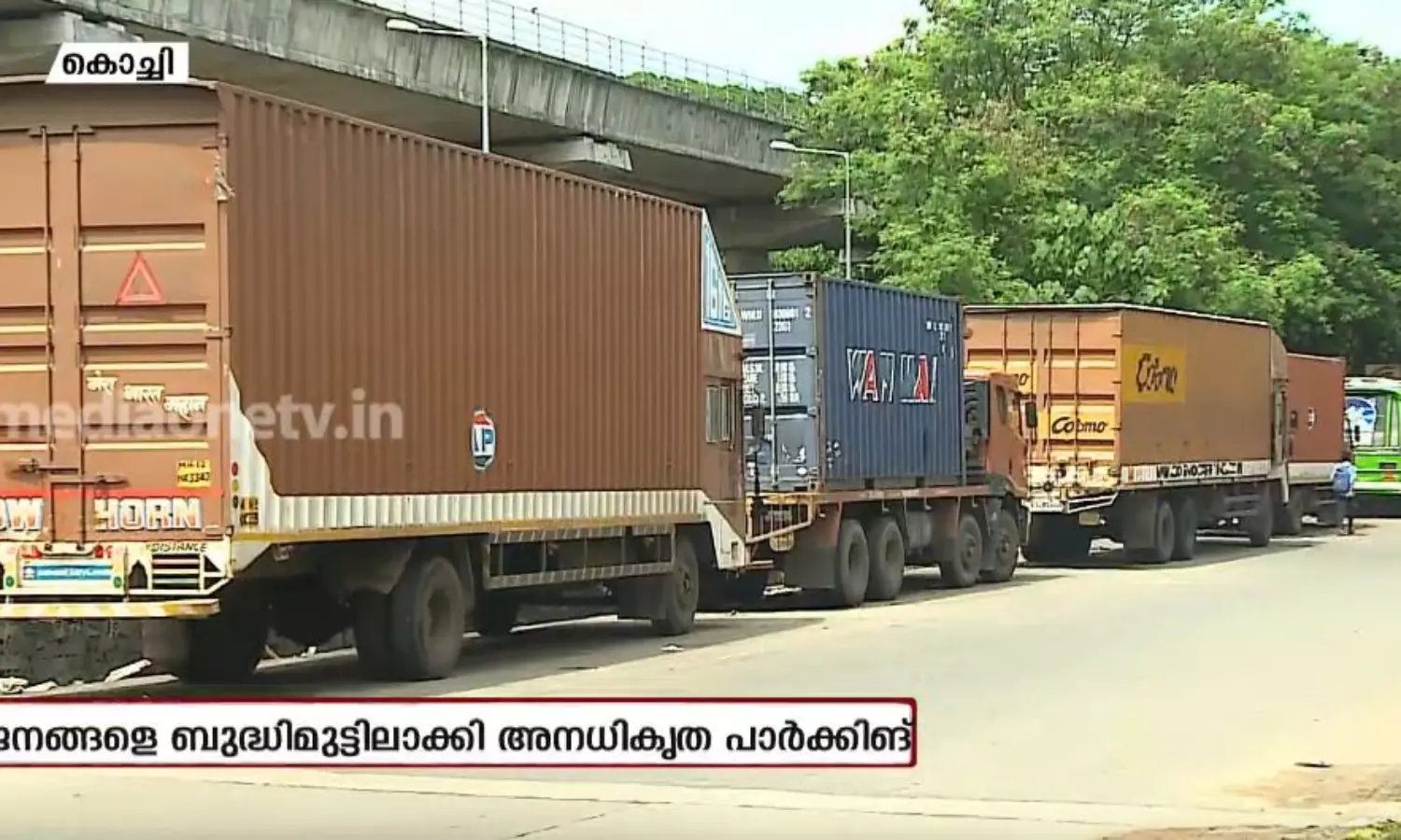 കണ്ടെയ്നര്‍ റോഡില്‍ അനധികൃത പാര്‍ക്കിങ്
