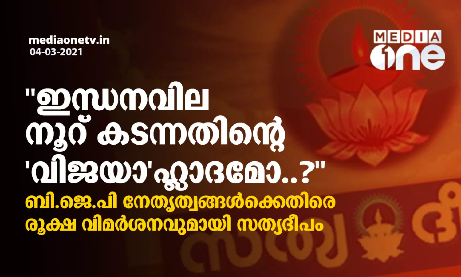 ''ഇന്ധനവില നൂറ് കടന്നതിന്റെ 'വിജയാ'ഹ്ലാദമോ..?'' ബി ജെ പി നേതൃത്വങ്ങള്ക്കെതിരെ രൂക്ഷ വിമര്ശനവുമായി സത്യദീപം